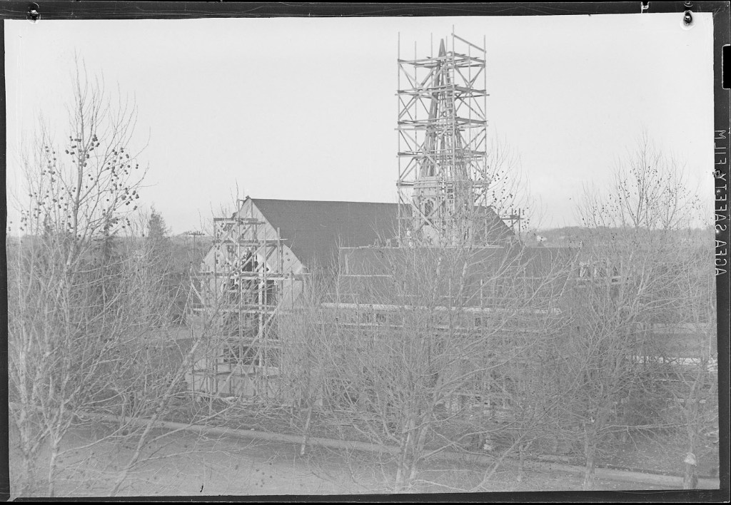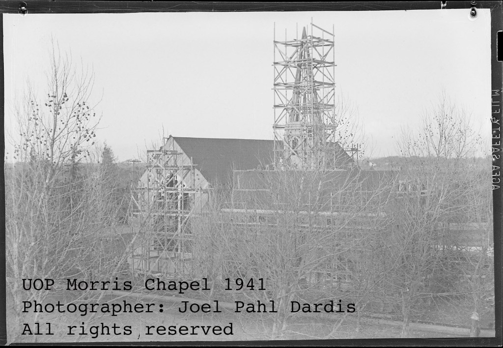 Since Stockton Junior College was on or near the campus of what’s currently UOP, Joel must have seen the construction of the Morris Chapel progressing. It was only a matter of figuring out a good vantage point to take this shot.
