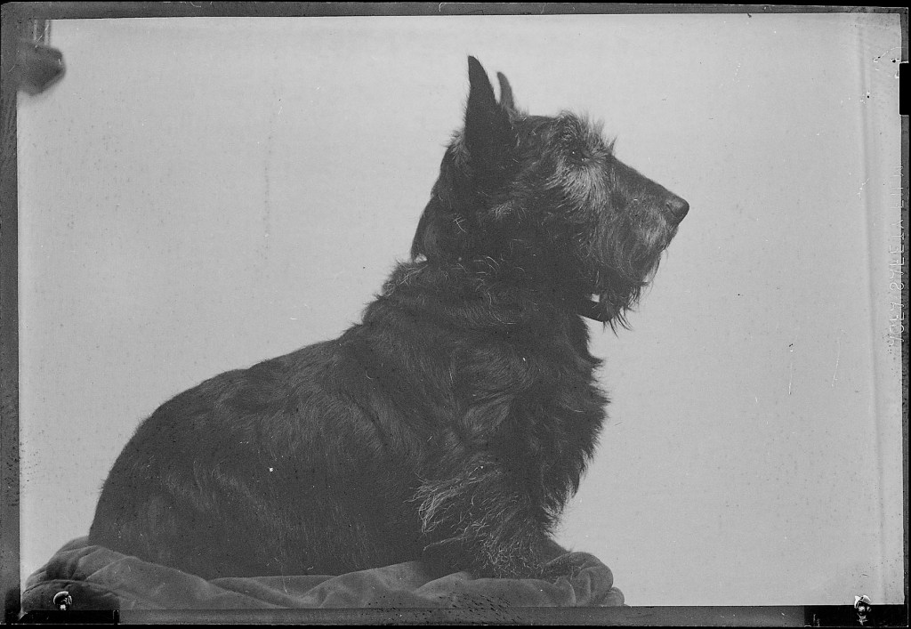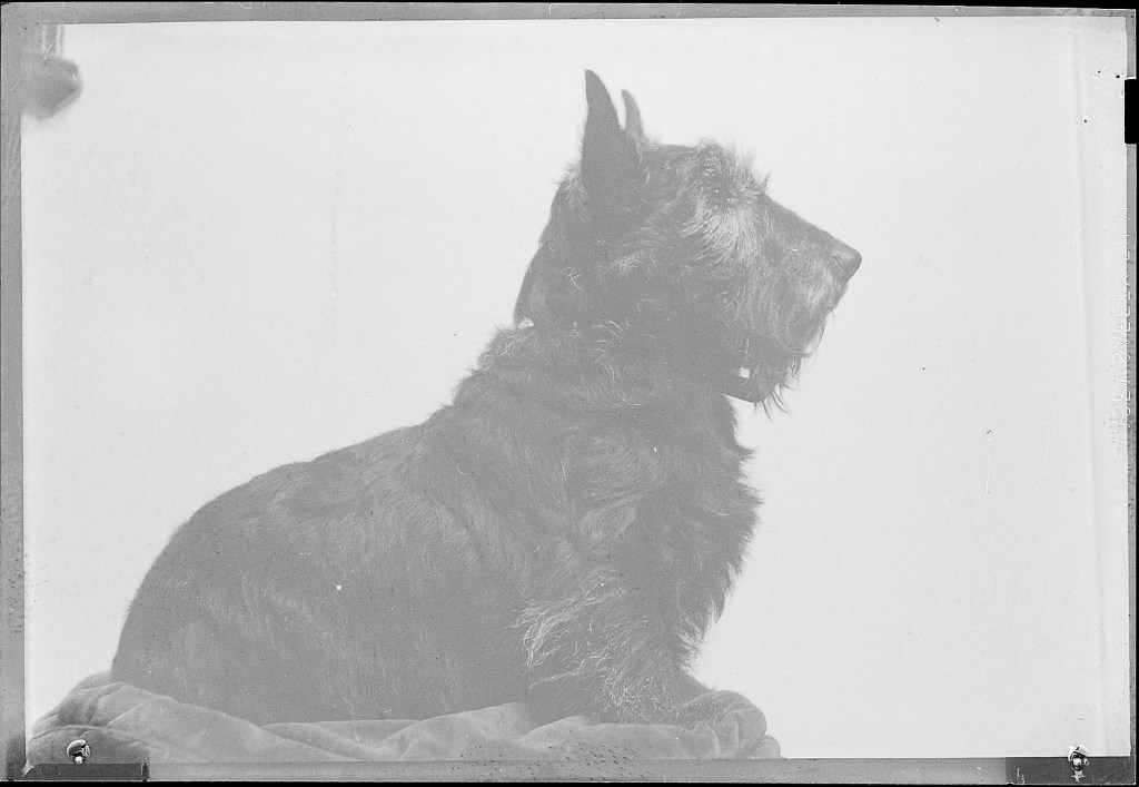 Butch is absolutely adorable, all perched up on a blanket. Joel might have exposed for the shadows as Butch is black. This, or negative development practice, results in a slightly washed out negative.