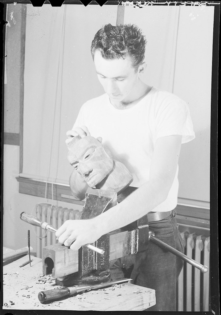 There are 9 more negatives from Agfa stock (versus Eastman Film stock) in this box and these are clearly a personal Joel project. We’ve seen three negatives from this box in a prior blog post. Two portraits from a yet unidentified man and the Morris Chapel in winter 1941/1942 under construction.