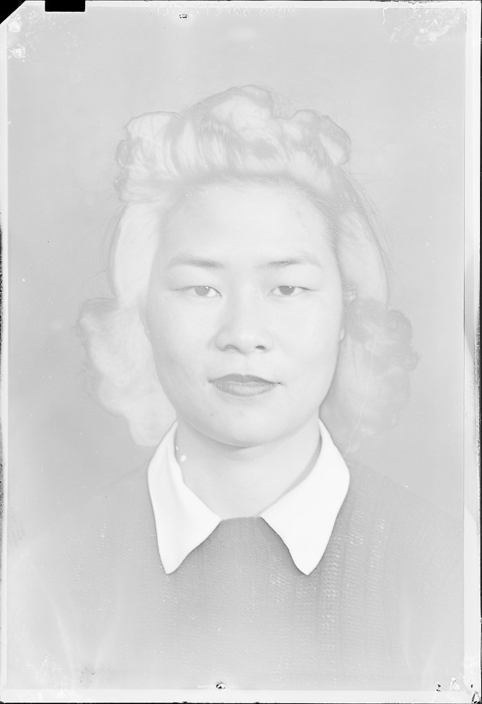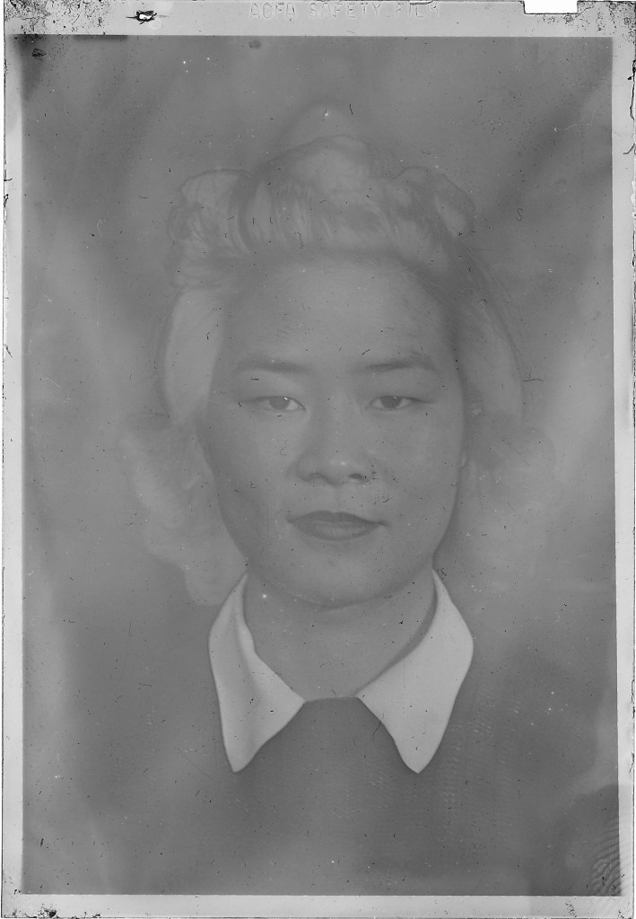 The darkest black from the woman’s hair turned light in color during the solarization porcess.