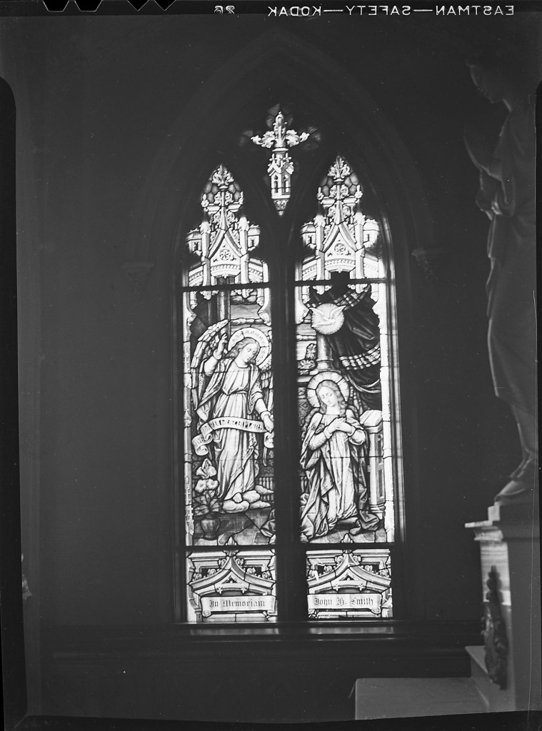 The last negative is an outlier in this series. It’s an image of a stained glass window that reads “In Memoriam John H Smith.” This might very well be the John Harley Smith (+1916) from Smith & Lang Co, 124 E. Main Street, Stockton.