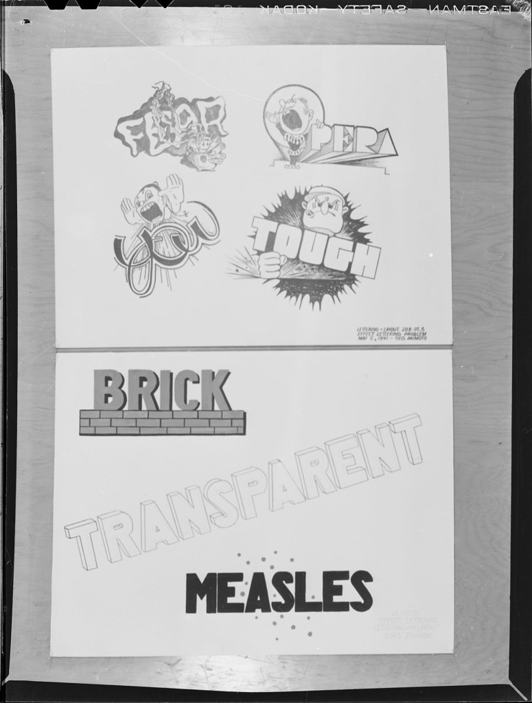 The remaining negative cover more graphic artwork like one would find in magazines or advertizing. Mere doodles but shows the breath of exposure these student artists would be exposed to.