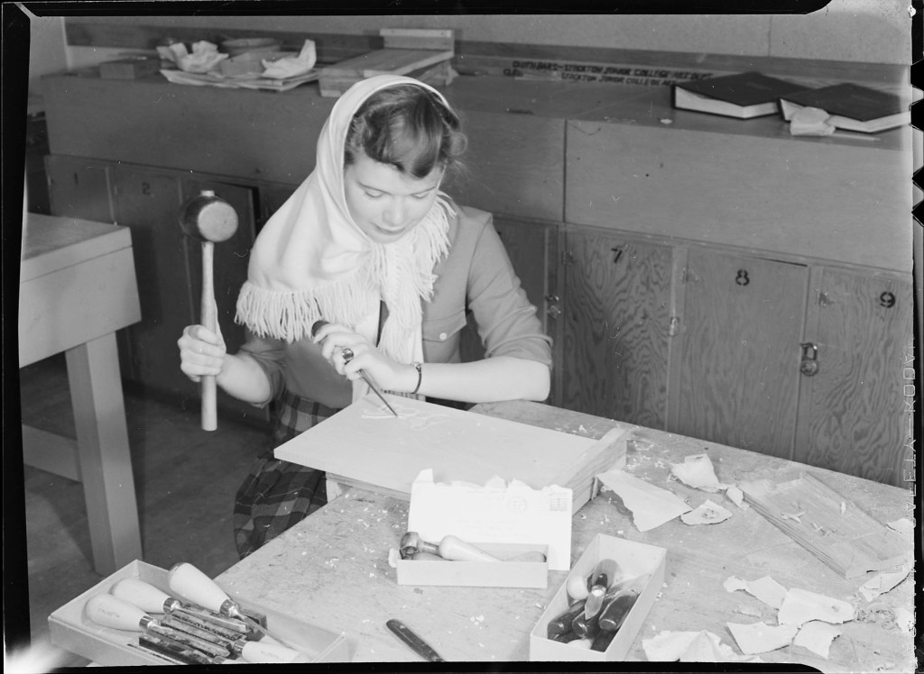 The last image in this box is from a student/artist carving wood. She was in previous images also.