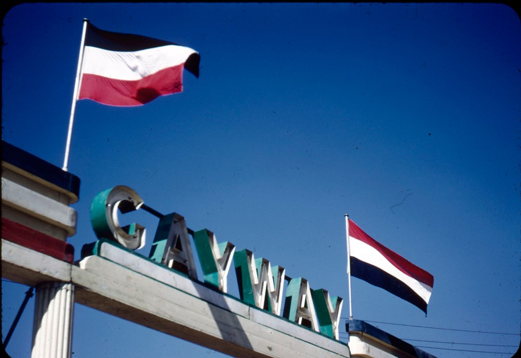 The oldest reference we could find to “GayWay” was in an image of a sign at the Golden Gate International Exhibition in 1939-1940 at Treasure Island. Although the character style and font is similar, I’ve not found images of the exact same sign.