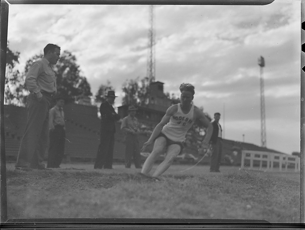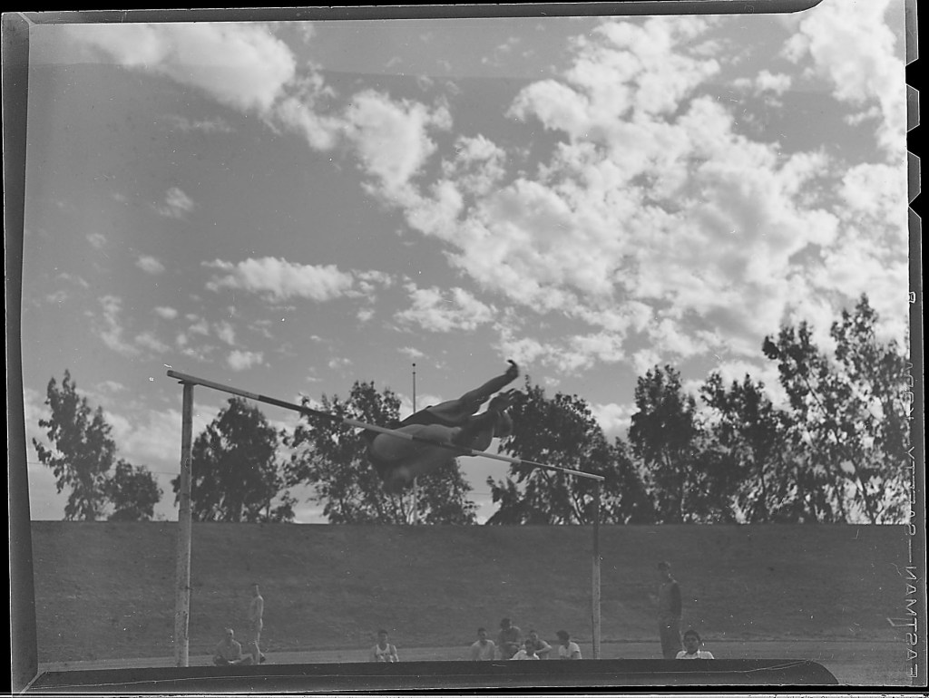 Second significant subject in box 16 was more track and field. A different day than the pole vaults we covered few blog posts past, witness the clouds in the sky.