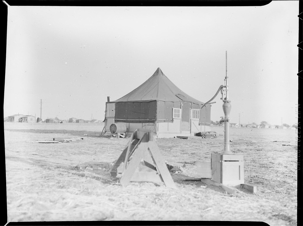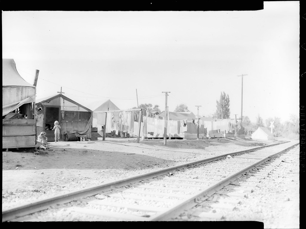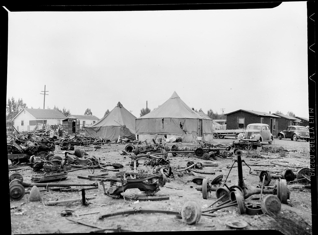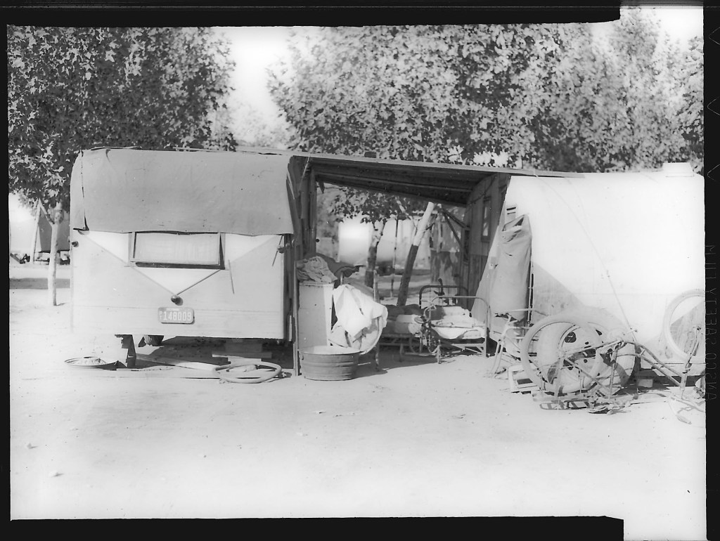 It shouldn’t be no surprise that alternative housing such as tents and run down trailers were also used as housing. Although Joel didn’t write down any clues about the next images, I firmly believe that these were photographed possibly in the Box Car City area or another area with seasonal labor. It’s clearly a collection of run-down living spaces with an accumulation of junk.