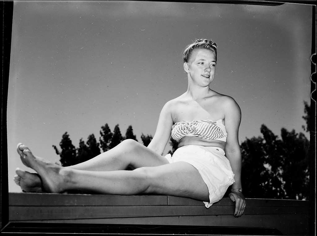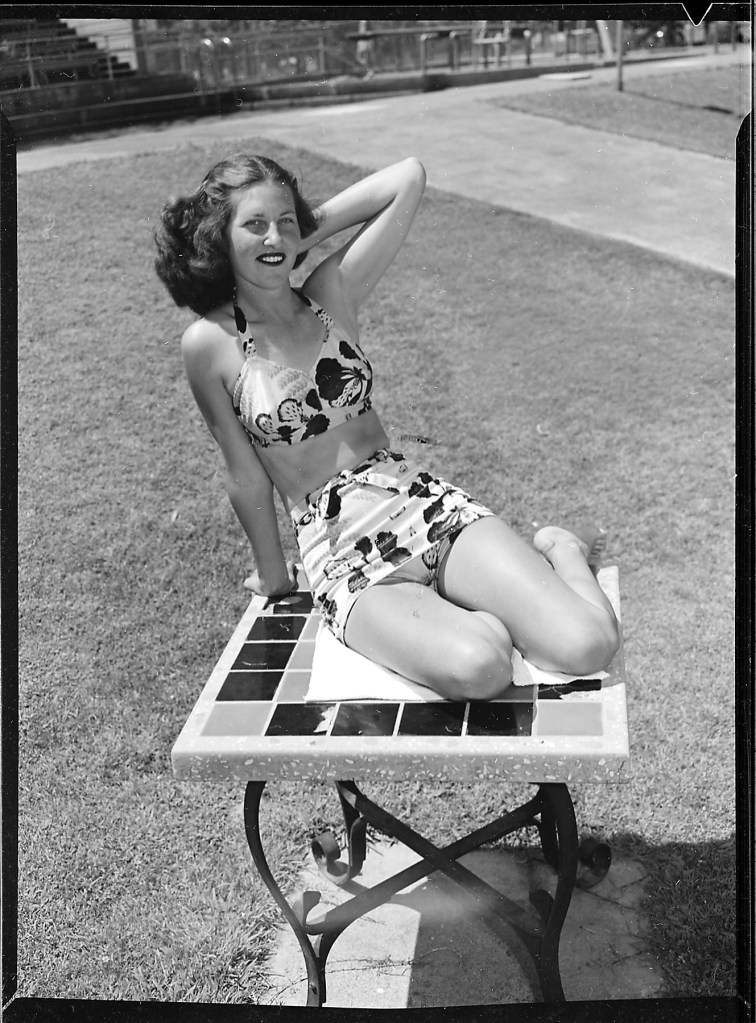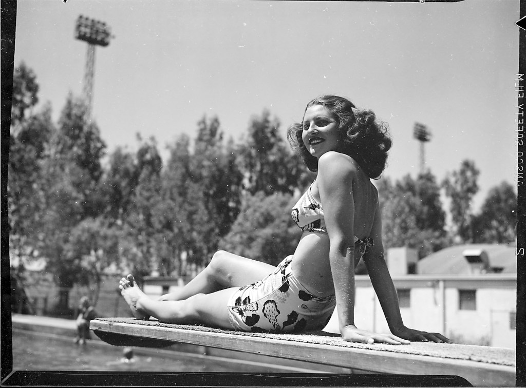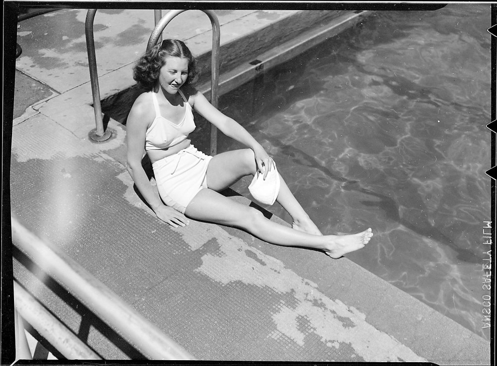 Leave it up to Joel to take poolside photographs. The box contains a total of 16 negatives and based on pencil marks, these date June-July 1947, all taken at the Pacific Pool.
