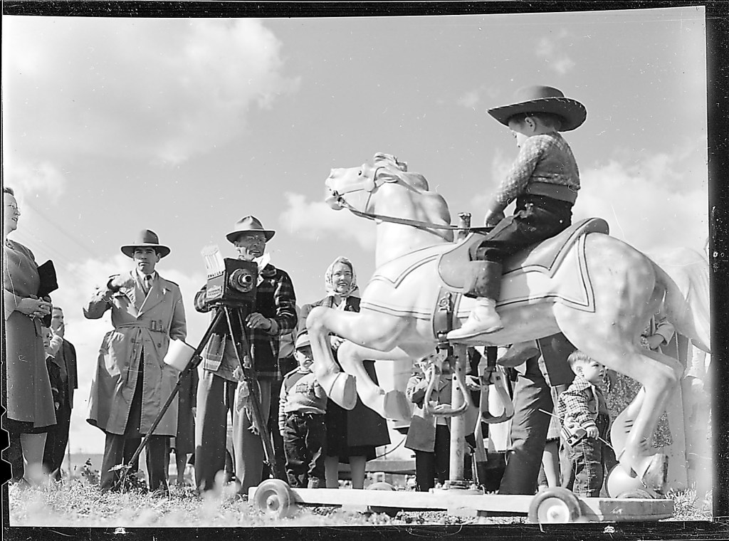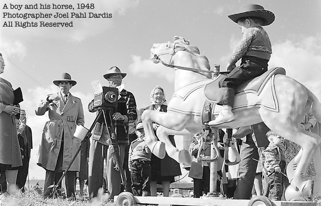 Next image is kind of cute and interesting. A photographer working children photography on what seems to be a fair. The camera even has a birdy on top and wings to give the children a proper focus point to look at. The adjustable horse is a nice touch.