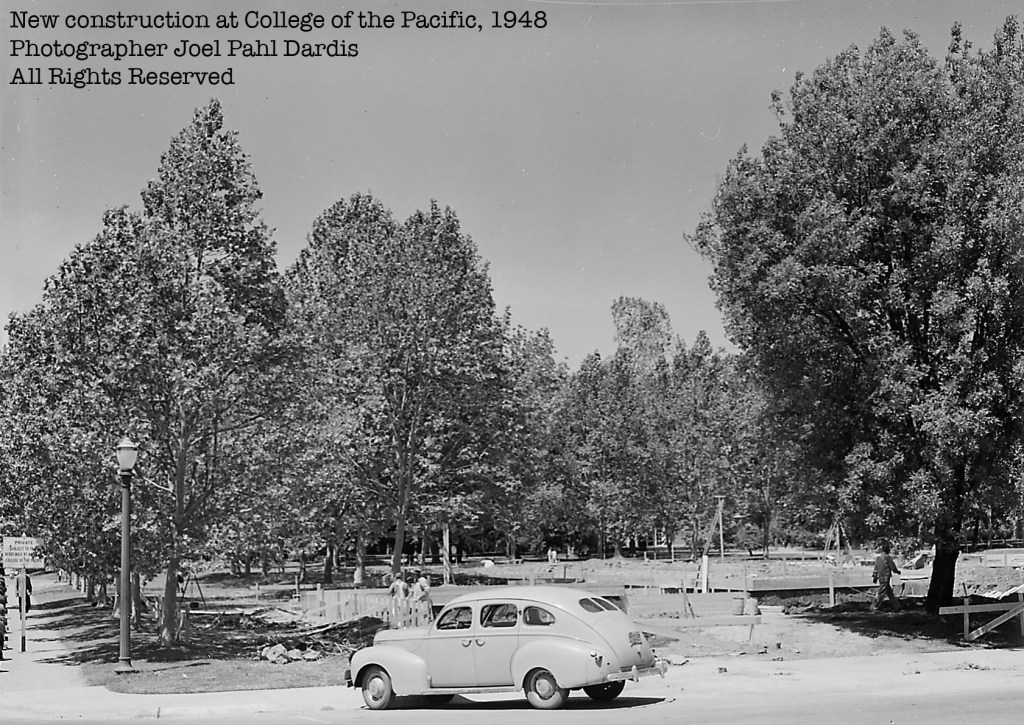 Last two images show the start of a construction project at College of the Pacific. There’s insufficient information, such as buildings or street signs, in the images to explain what’s going on, this is just the outline of a foundation for a new building.
