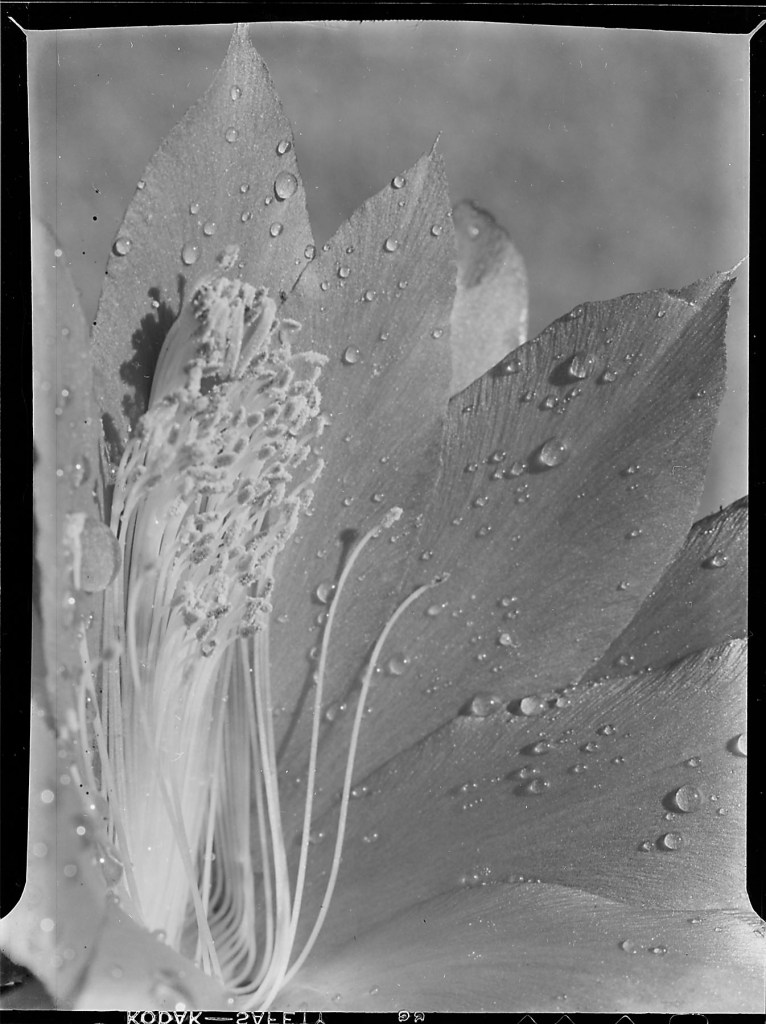 We’ve seen a few flower images from Joel in color on Kodachrome in the past. This is the first time I’m finding B&W press format image in macro style. Joel is shooting pretty much a 1:1 image, this means, a lot of bellows draw on the camera and the need to apply exposure compensation. That was all part of the arsenal of tools a photographer was required to learn at the time.