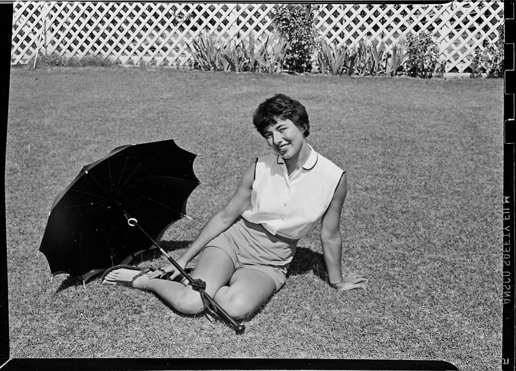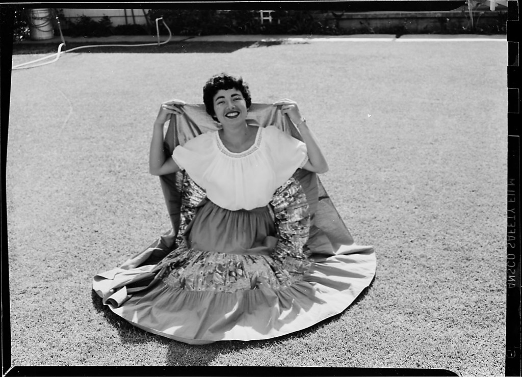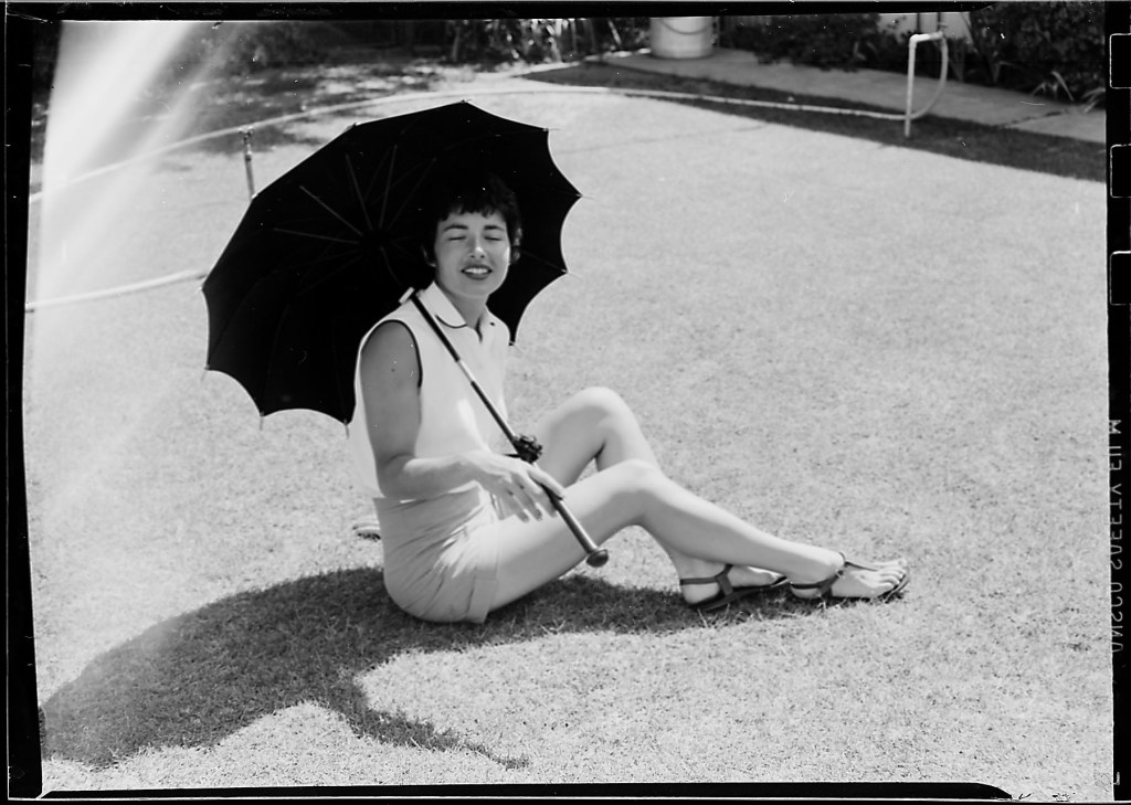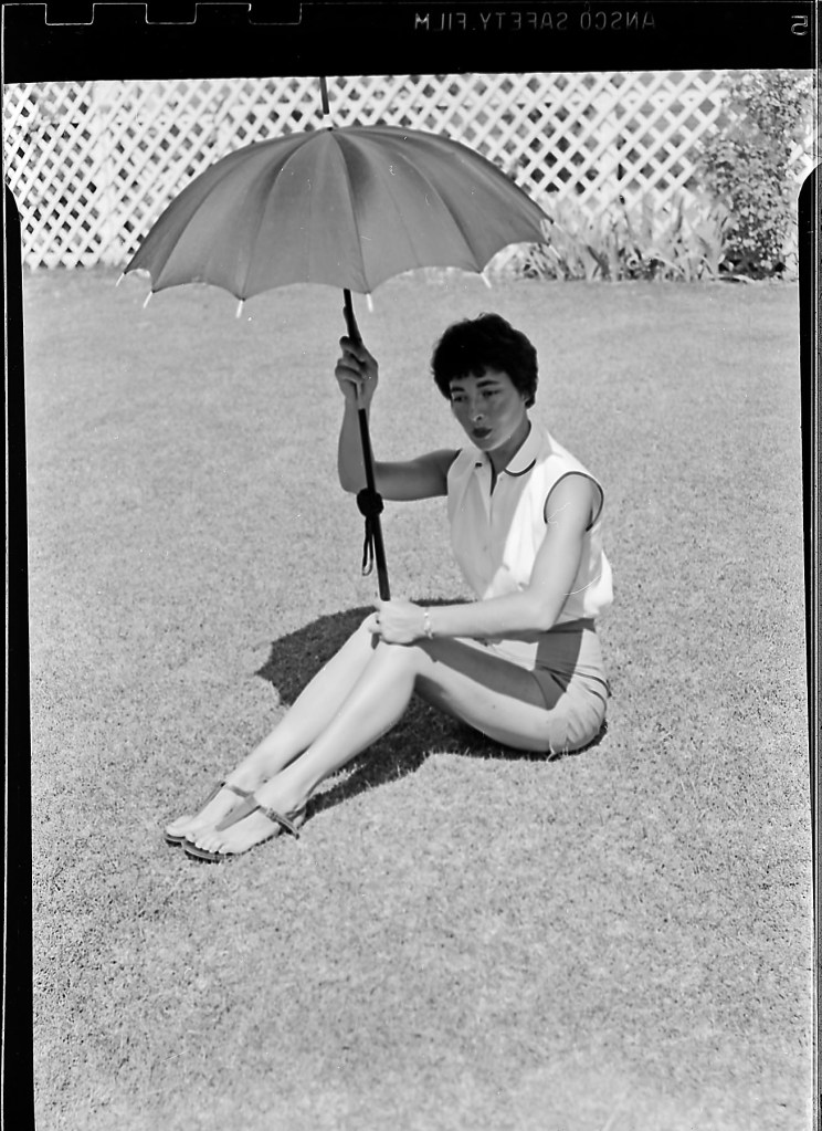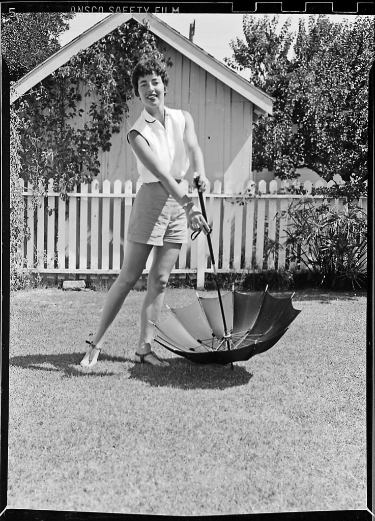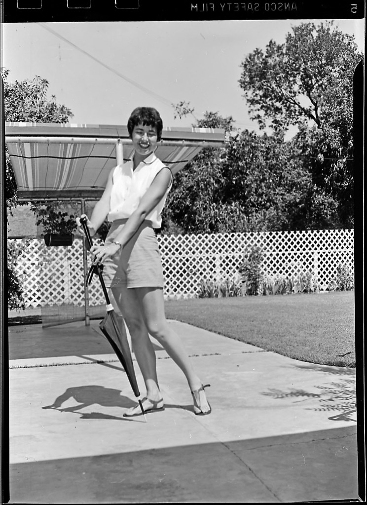 I believe the first shoot is the dress shoot, most likely at the 711 W Walnut address. The full sun makes it difficult for Shirley to keep the eyes open.