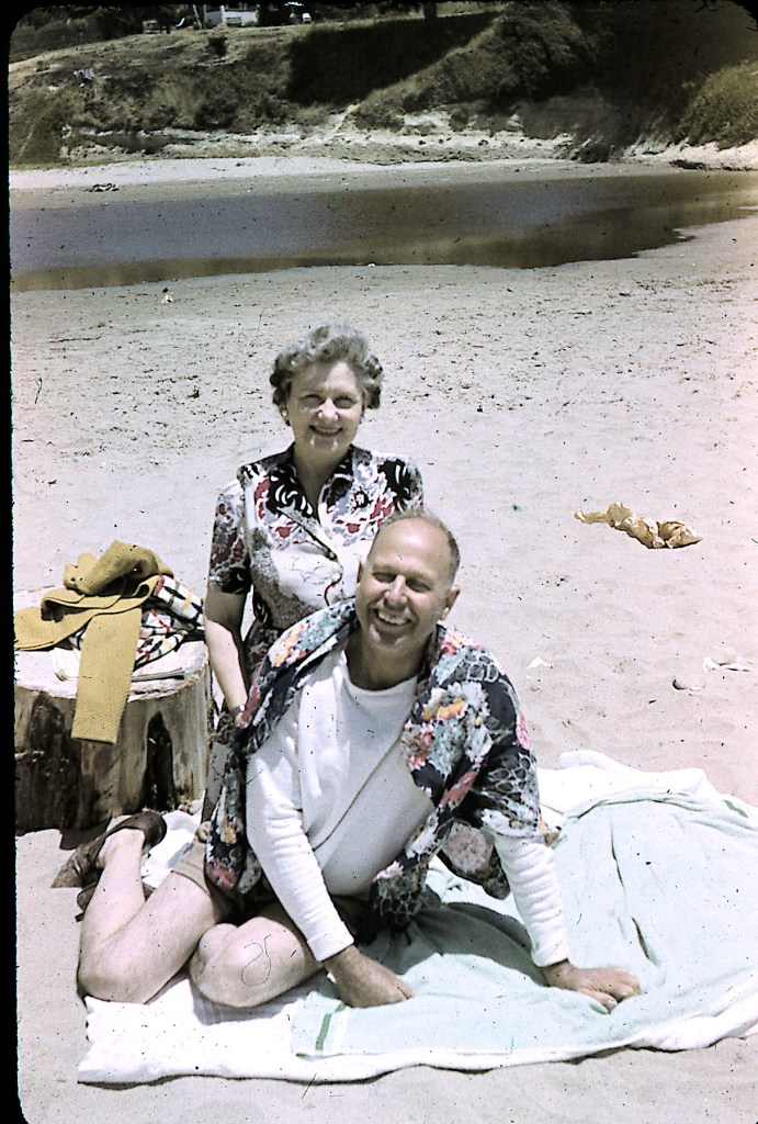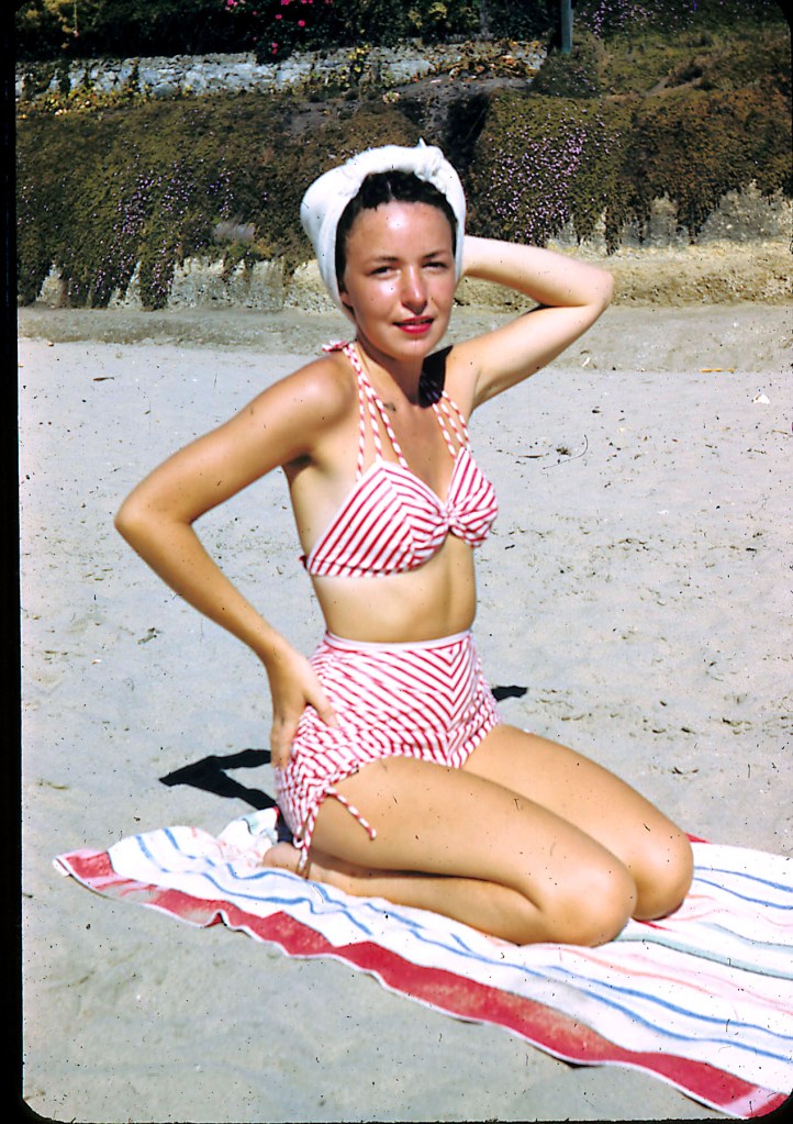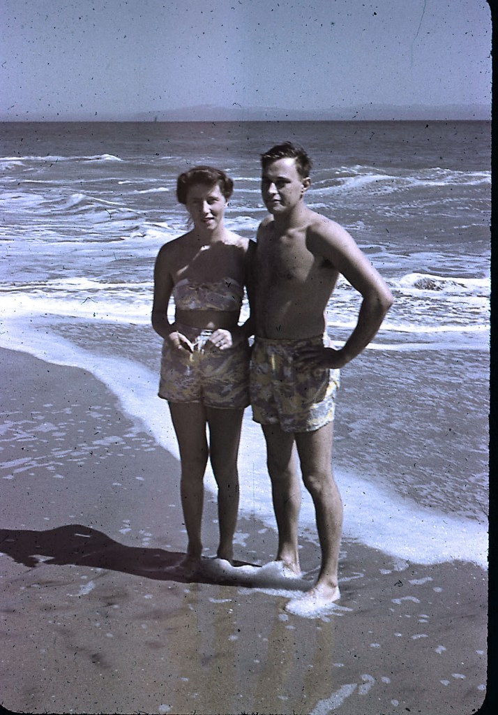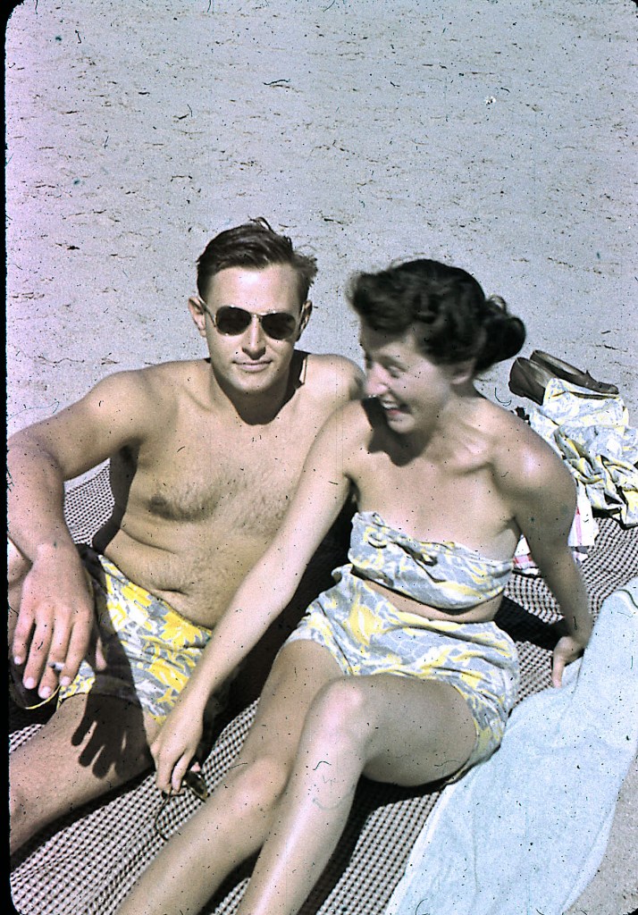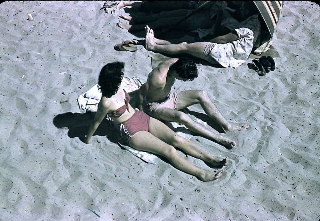 We’ve seen images of Werne Pahl and Bernice Adams, his wife, in B&W on the beach and in the water in 1946. These are two color equivalents for the earlier “Family, Pool, Box 17, 1946” blog post