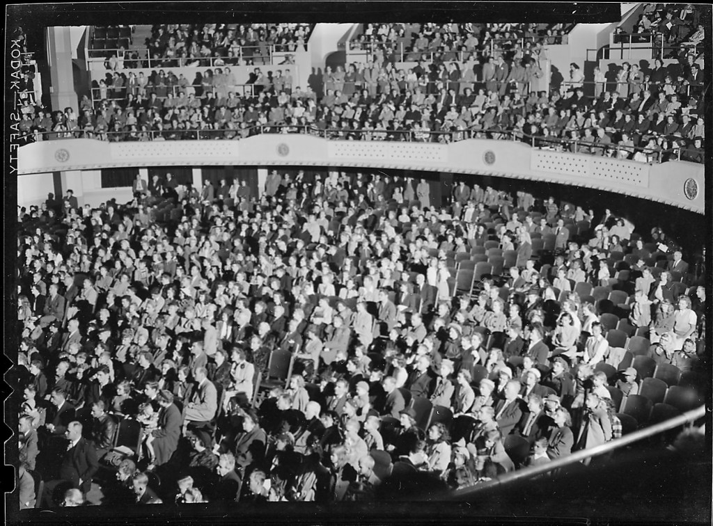 As usual for large Stockton events, it plays in the Stockton Memorial Civic Auditorium. Joel captures a pretty large crowd attending the event.