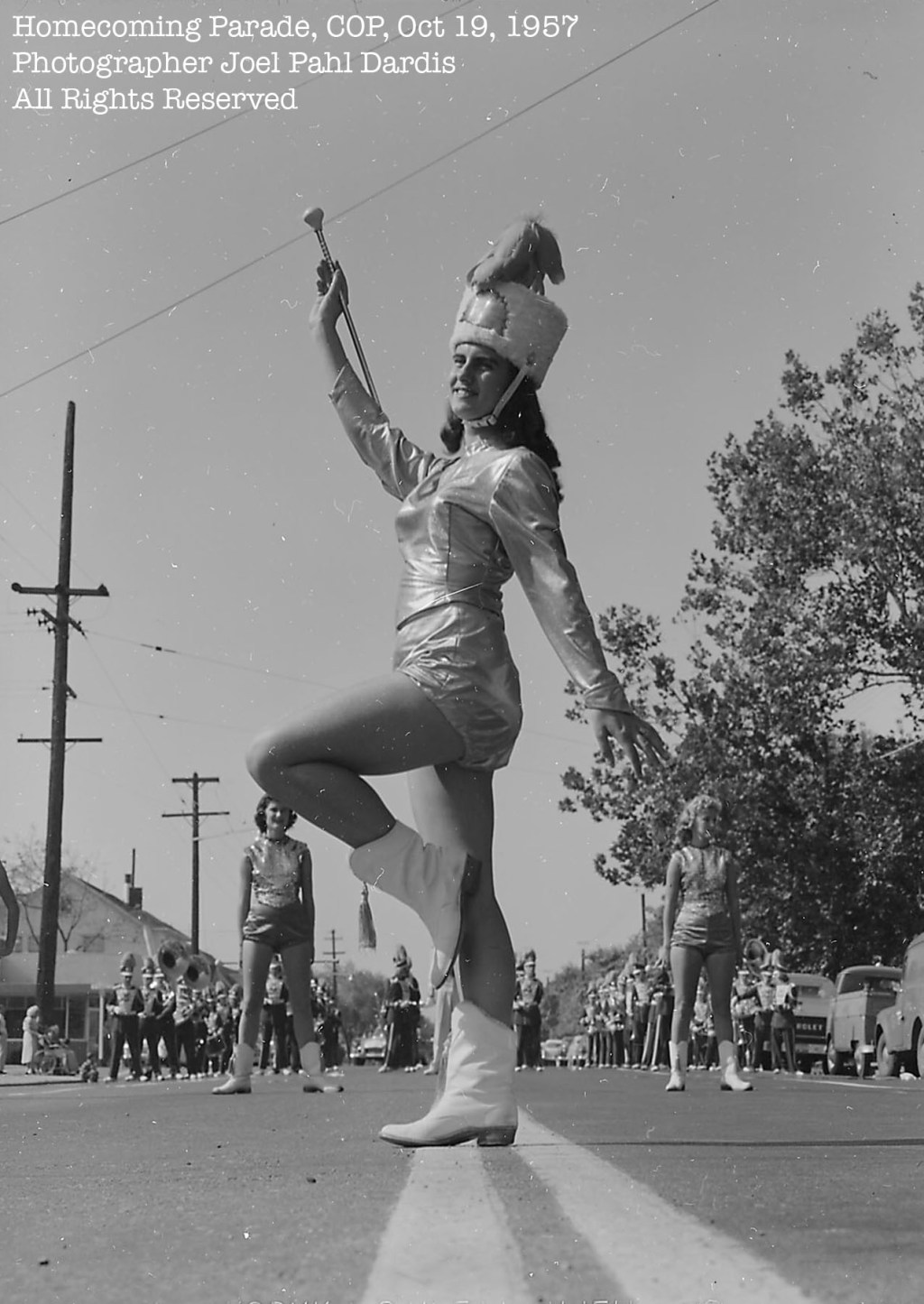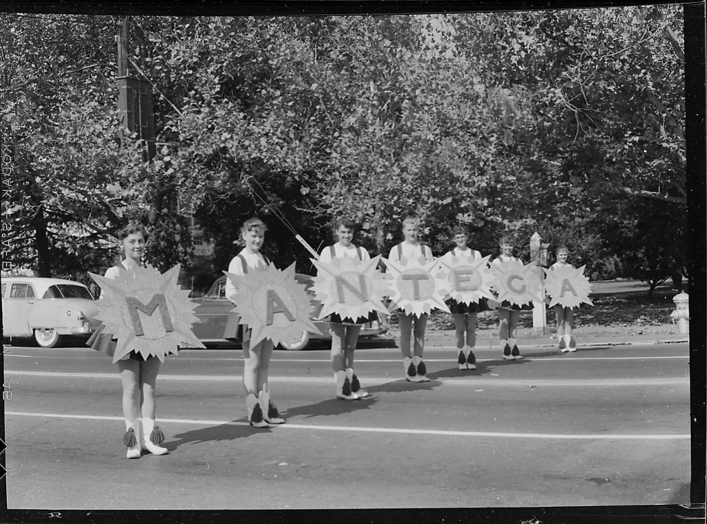 I’m fairly certain the majorette with the marching band behind is also from Manteca High School, that would make the majorette Addie Darling, for whom the current MHS music hall is named.