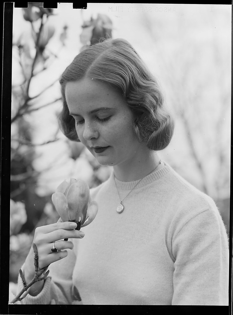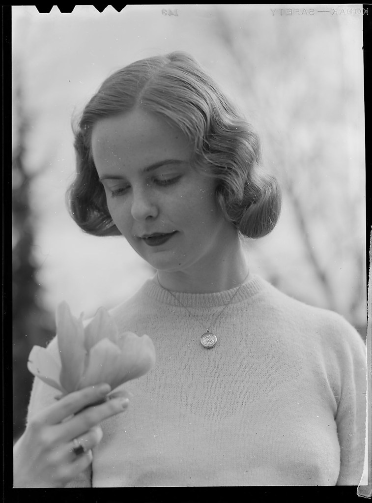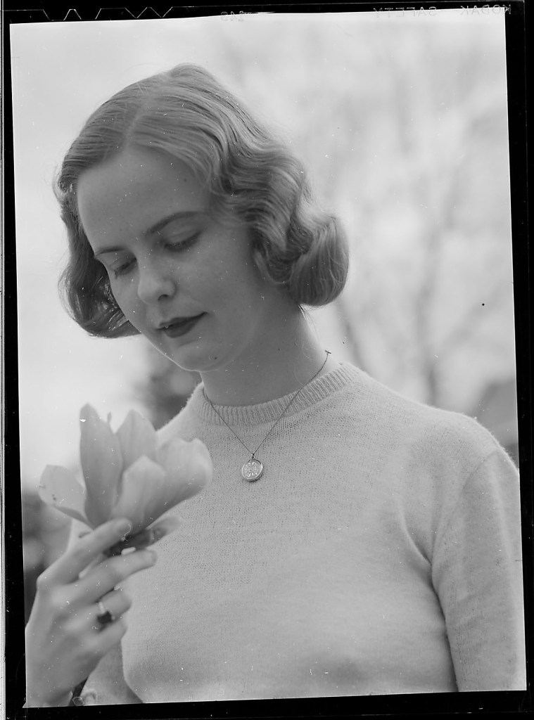 Iris Spenemere is all that I could read. A quick search on the UOP digital library showed only one Iris in 1949, and some further genealogical research came up with the full name. Iris Mae (May) Spoonemore. She graduates in January 1949 with an AB Modern languages. Iris marries Alfred Charles Peterson, December 17, 1950. I know they had children, so these images could be important to them.