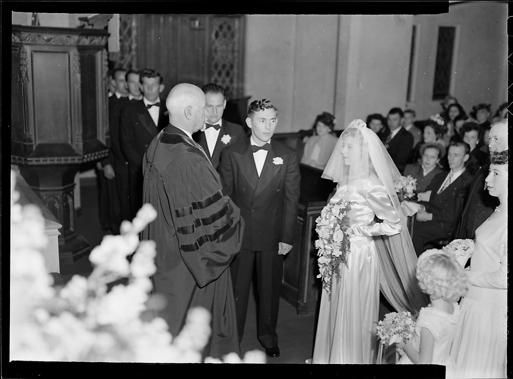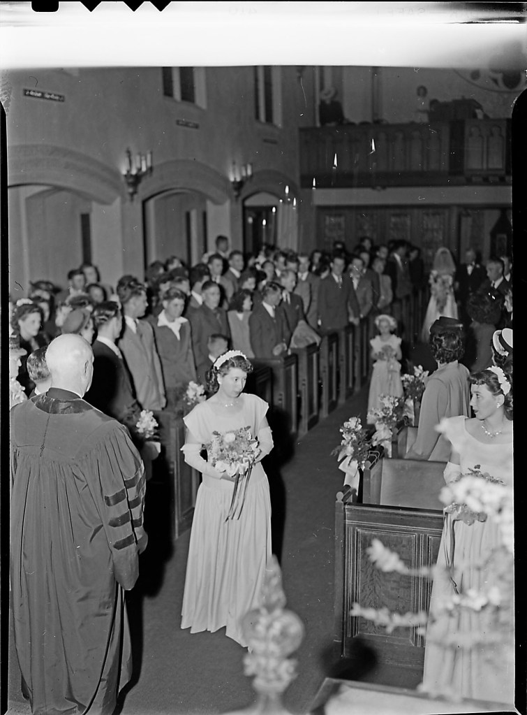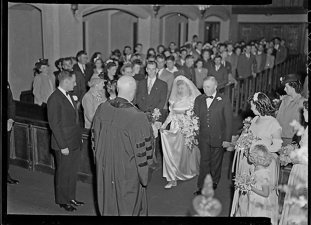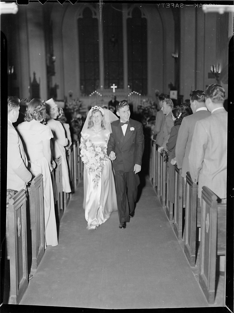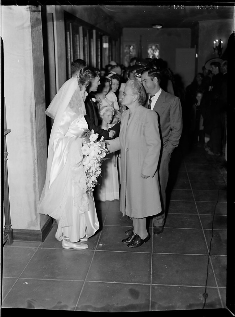 I was able to figure out, through some genealogical sleuthing, that this was the Everett E Wilson (1922-2012) wedding with Angela Pastor (1926-2018).