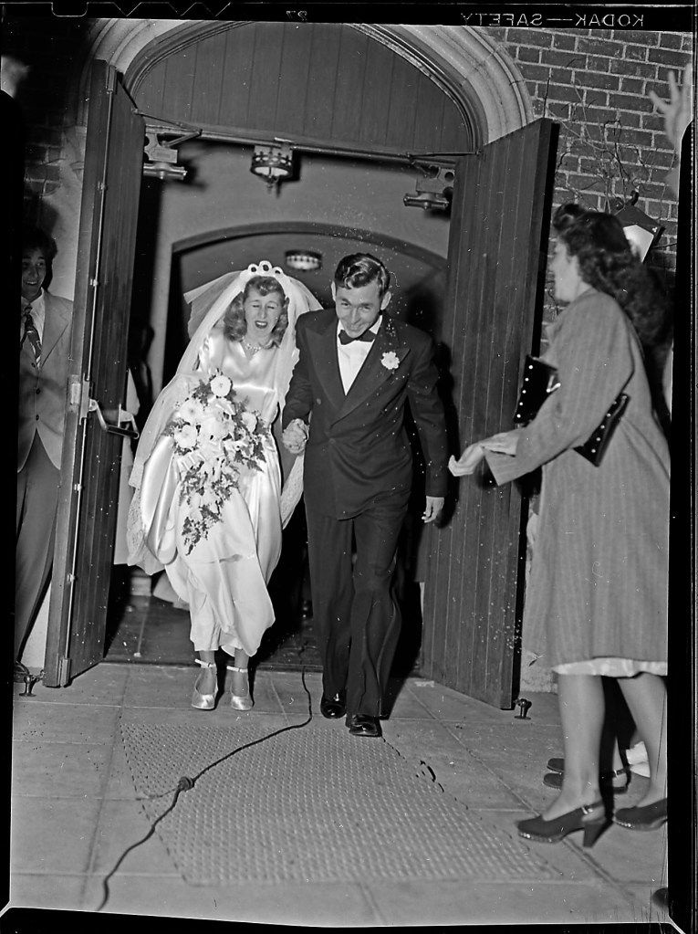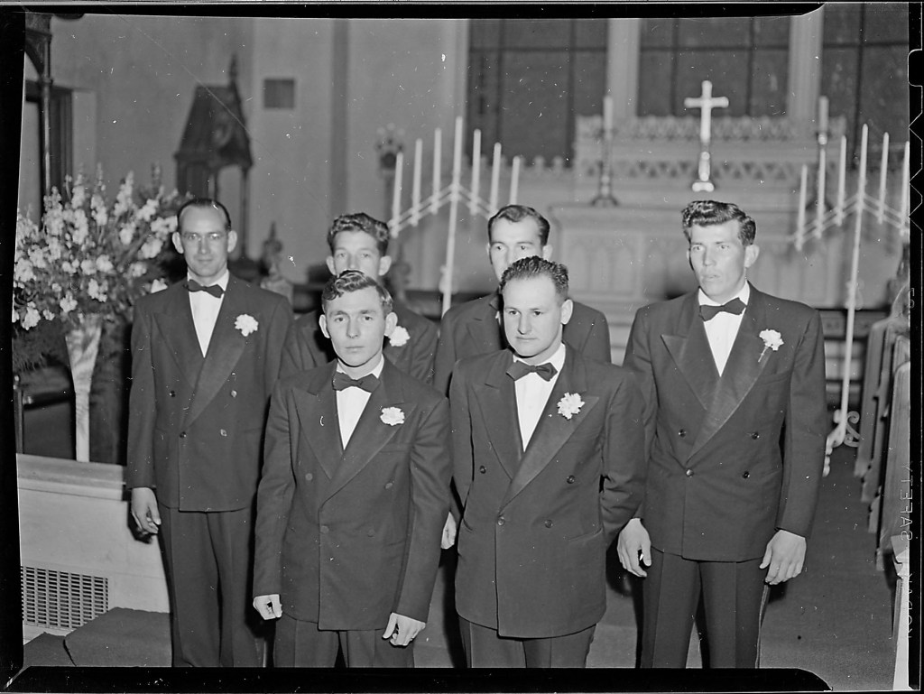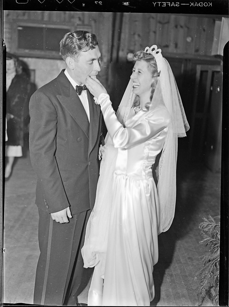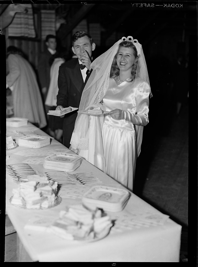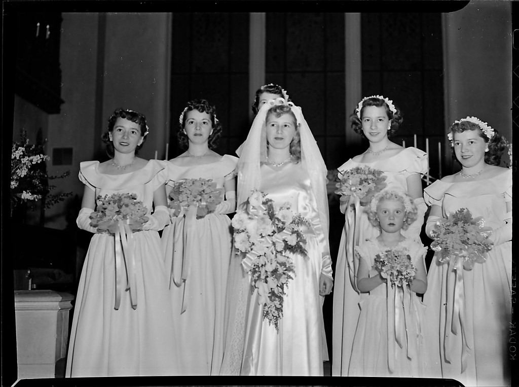 I was able to figure out, through some genealogical sleuthing, that this was the Everett E Wilson (1922-2012) wedding with Angela Pastor (1926-2018).