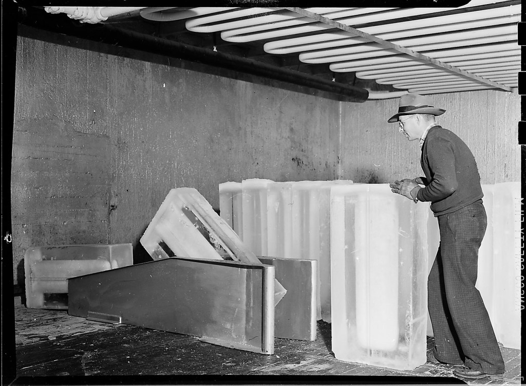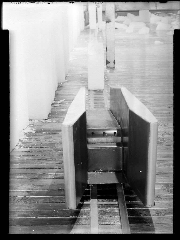 Last image of this blog post gives us some idea of how this might have worked. There are moving parts in this piece of equipment to force the ice block into the proper dimensions.