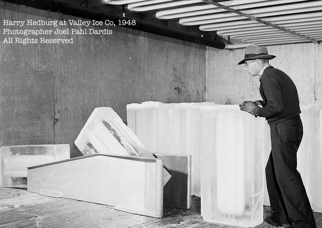 The machine above might have been a new acquisition and Harry Hedburg wanted to show it off. Who knows. By 1948, iceboxes were well on their way out as the refrigerator, first gas powered and only later electrically powered, were on the rise and taking over the residential markets./
