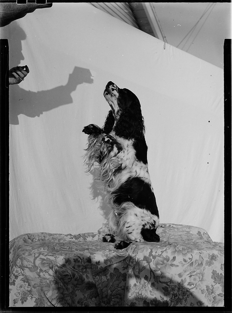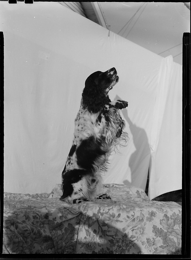 All the other images are of two well behaved dogs, tricks included. One image has presumably Mrs. Marion Nelson in it. I believe Dr. Nelson refers to Dr. George Nelson, the veterinarian whose premises Joel photographed earlier in 1948.