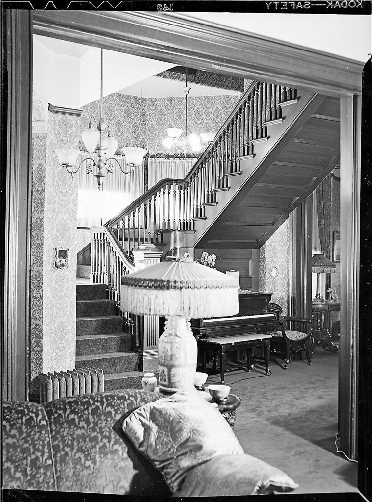Alternate view of the internal grand staircase, Rossi House, March 28, 1949, Stockton