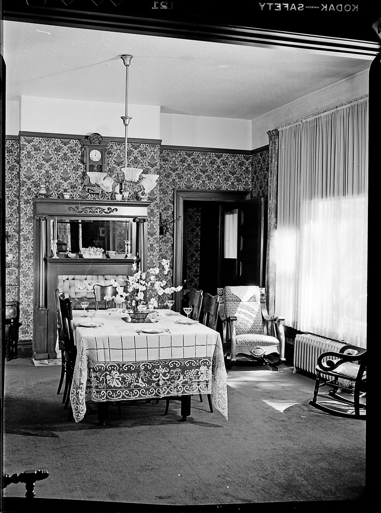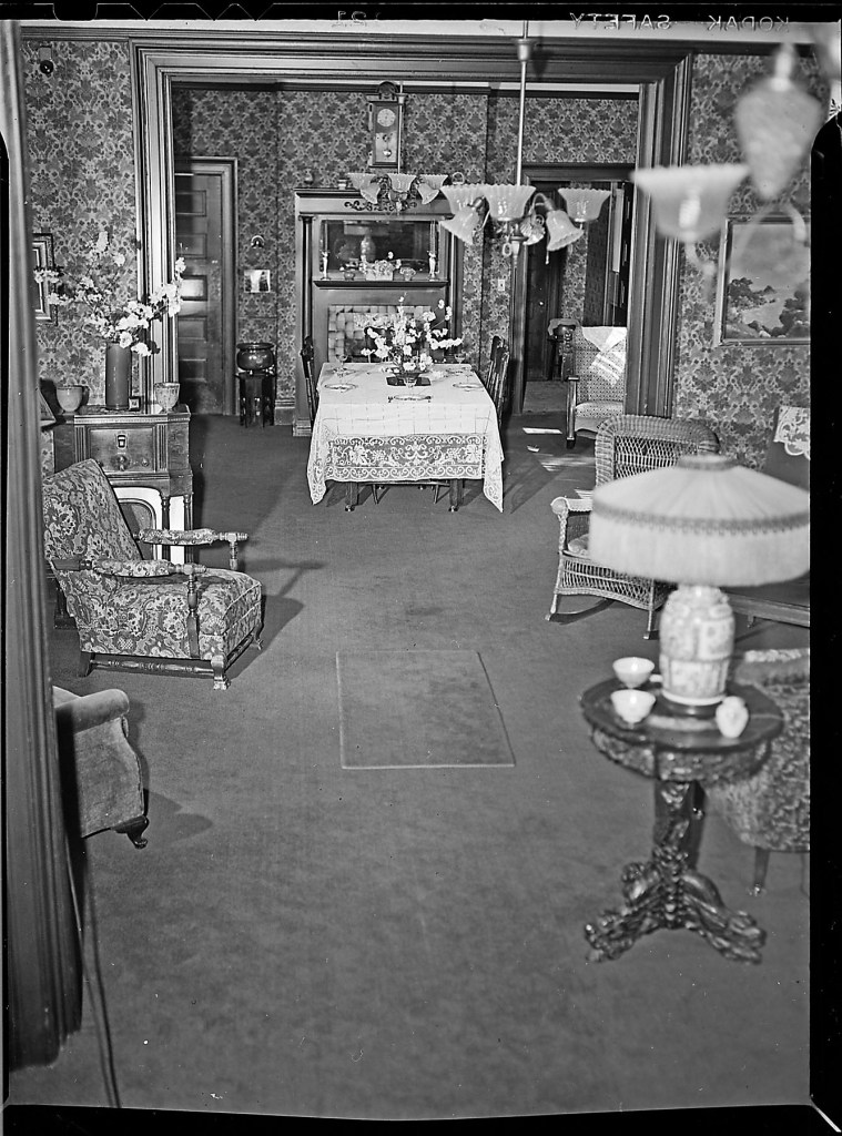 Parlor and dining room, Rossi House, March 28, 1949, Stockton