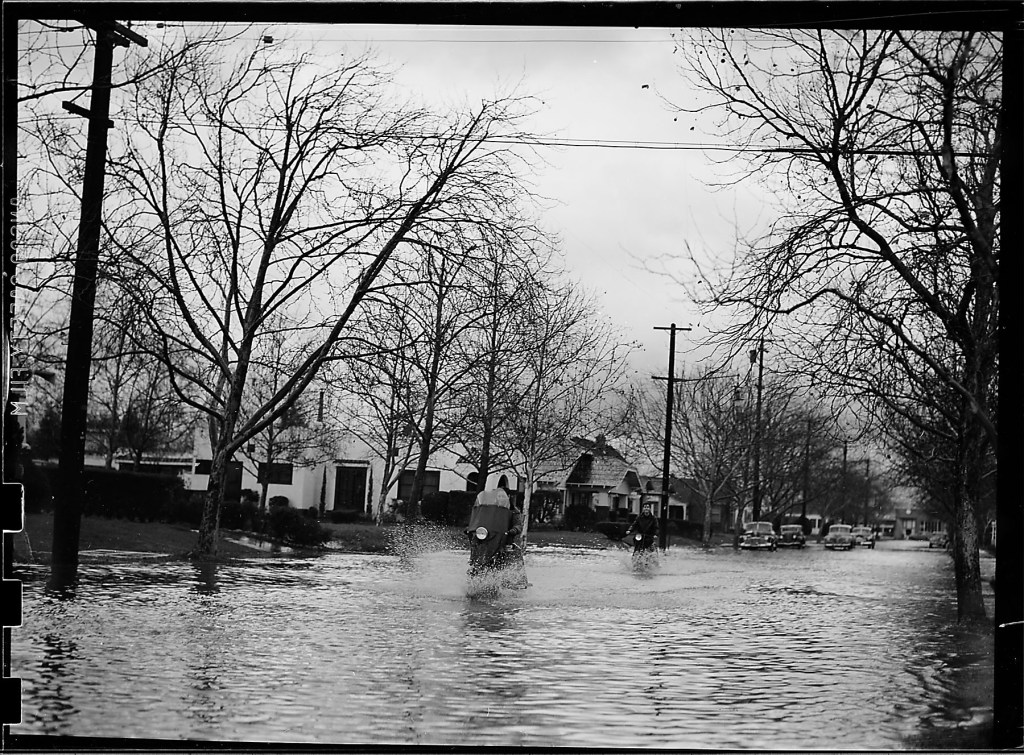 The above image is another one of the 1950 November/December flood in Stockton. This flood was not as bad as the 1955 flood, but it was a reminder that something needed to be done to prevent this in the future. It would take a devastating flood in 1955, to take action.