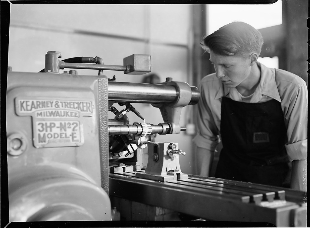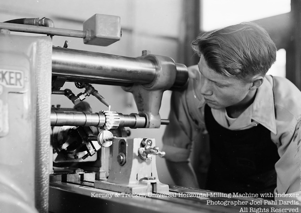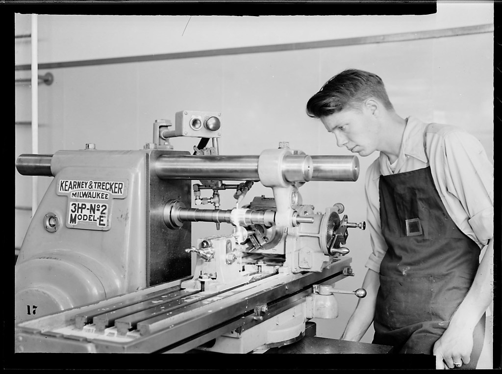The second piece of equipment is a Kearney and Trecker, a 3HP universal horizontal milling machine, Model 2E. This milling machine must have been very new to the machine shop as this particular model is from 1948/
