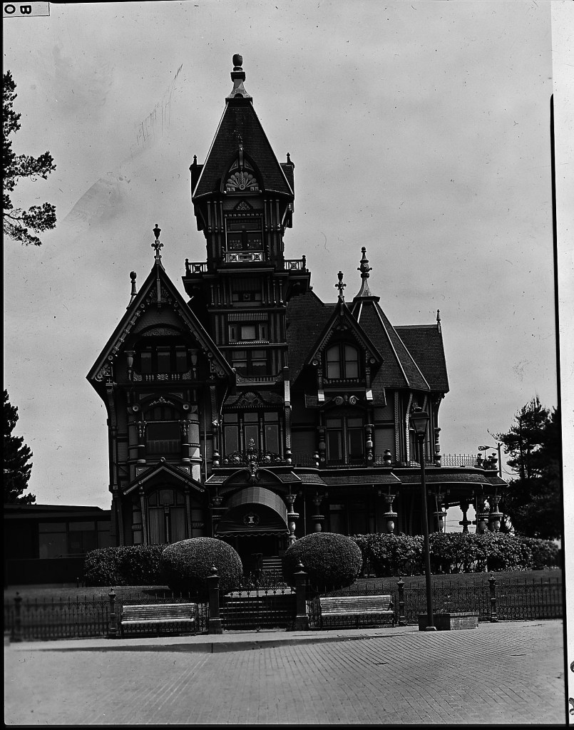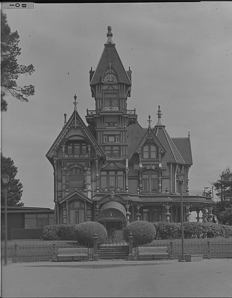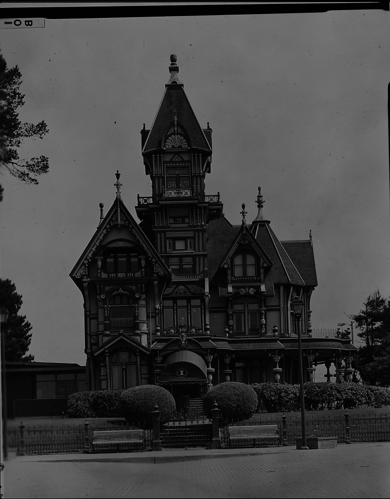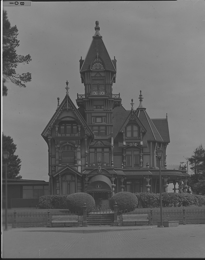Closer bracketing of this image should be possible by comparing this negative with all the other historic images out there of the Carson Mansion. Since it is one of the most photographed buildings in CA and US, there must be a good amount of 1950-1964 material out there.