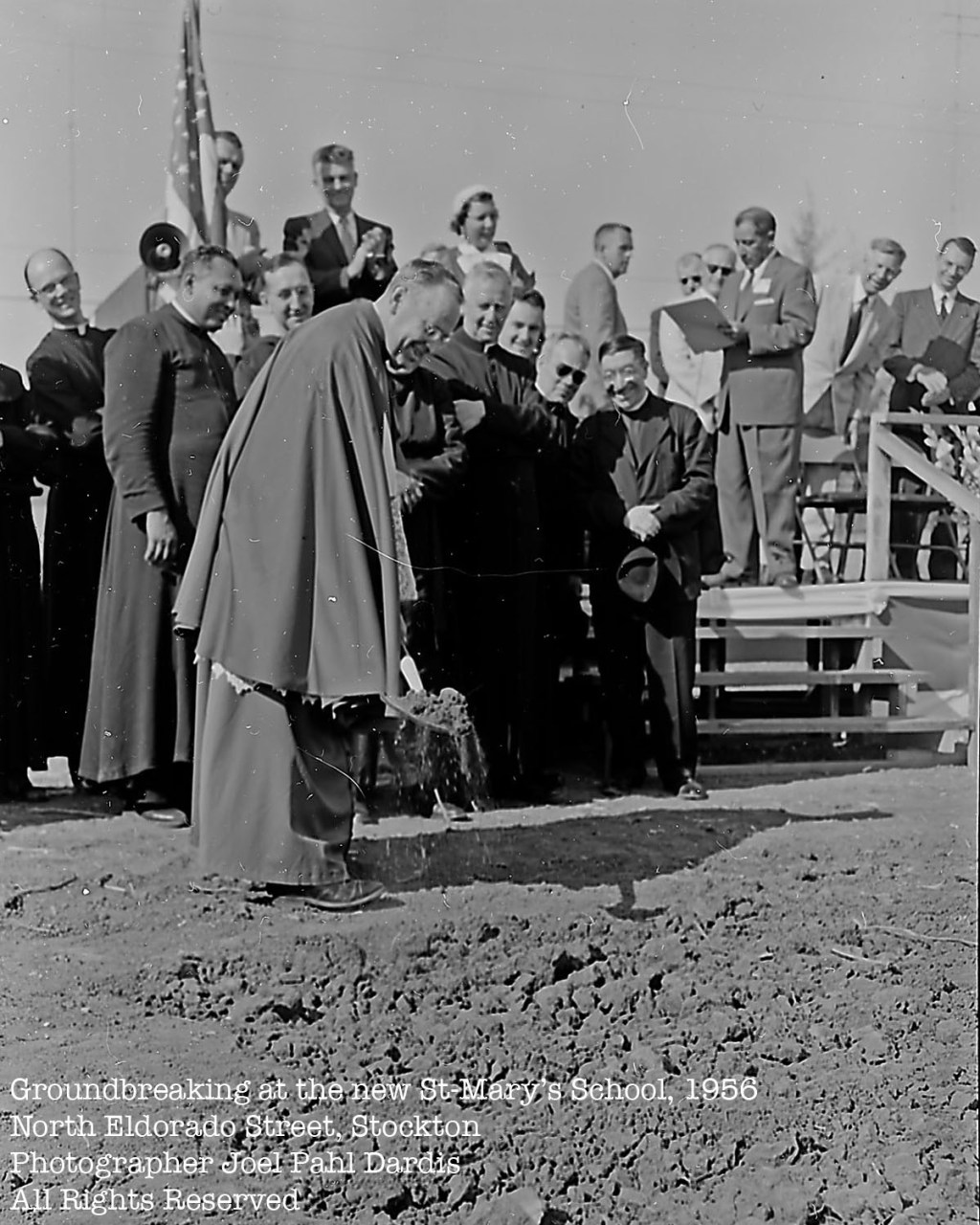 More action ! Groundbreaking at St-Mary’s new school, Stockton, 1956