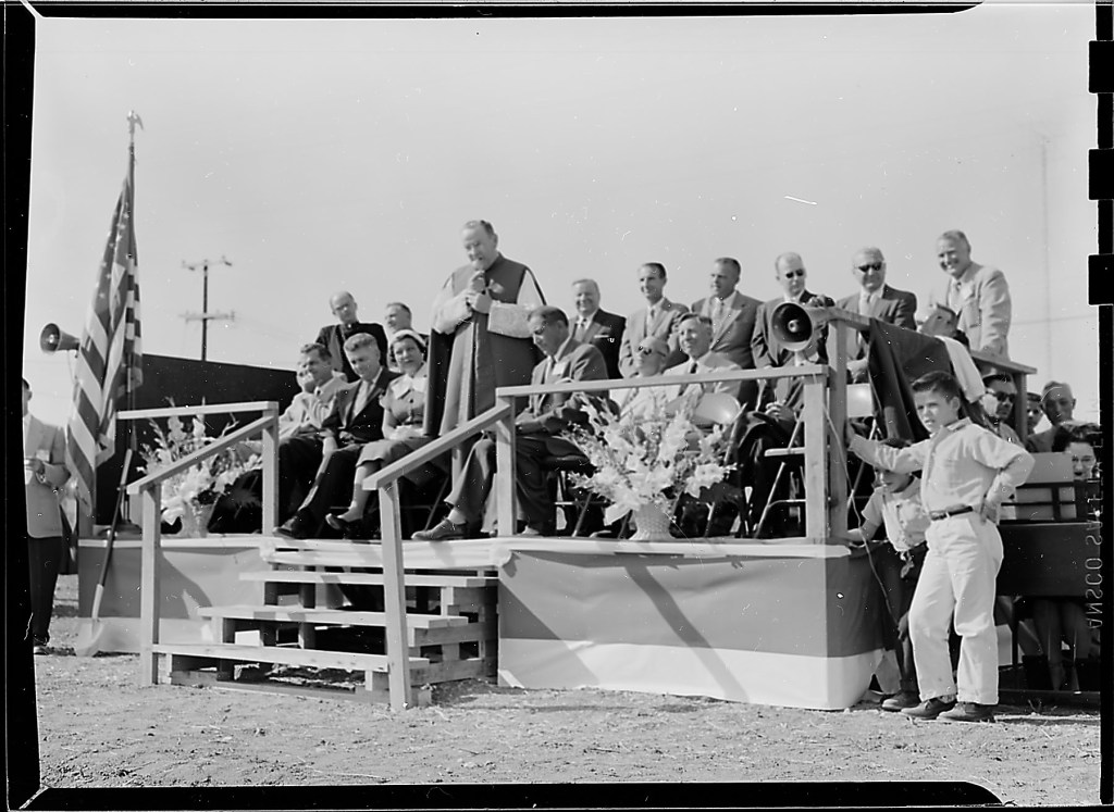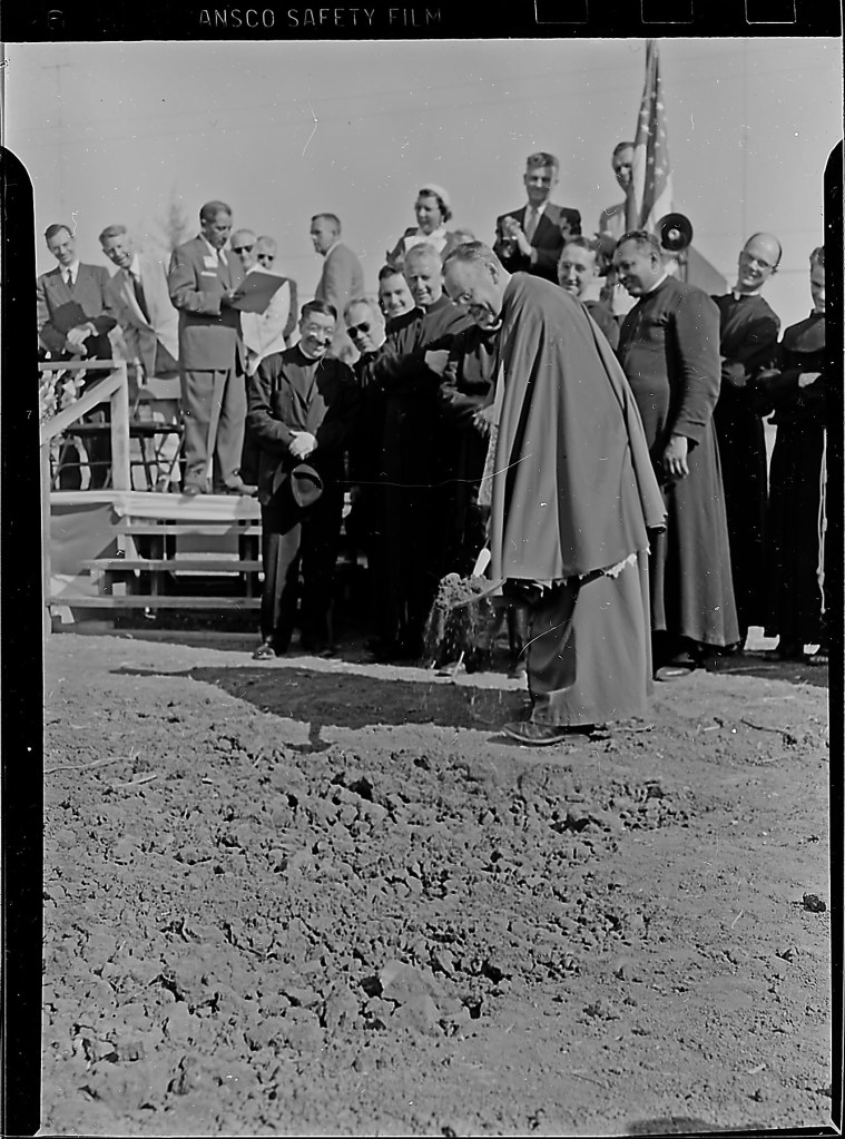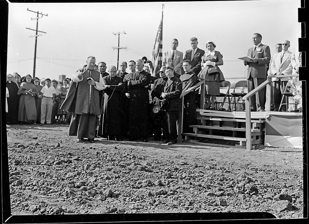 Speeches during the groundbreaking of St-Mary’s new school, Stockton, 1956