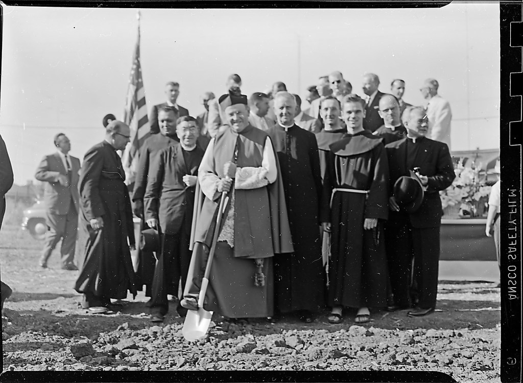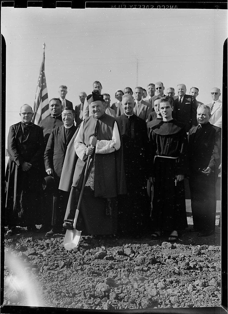 The digging team ! Groundbreaking at St-Mary’s new school, Stockton, 1956