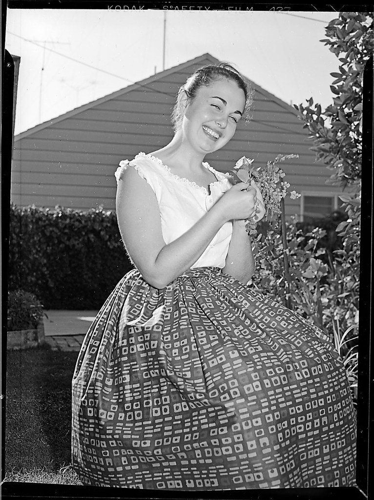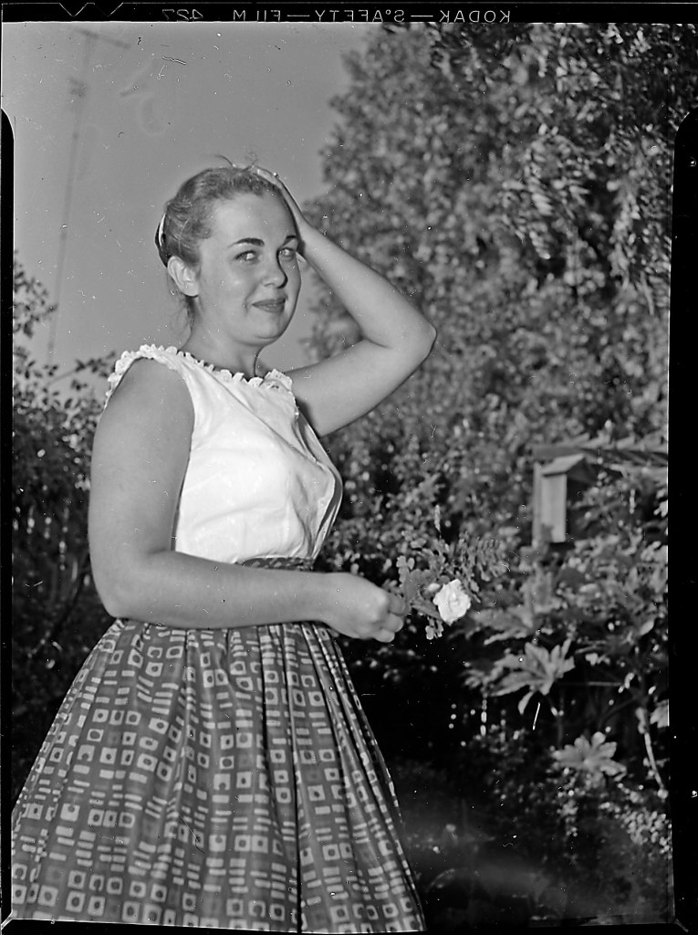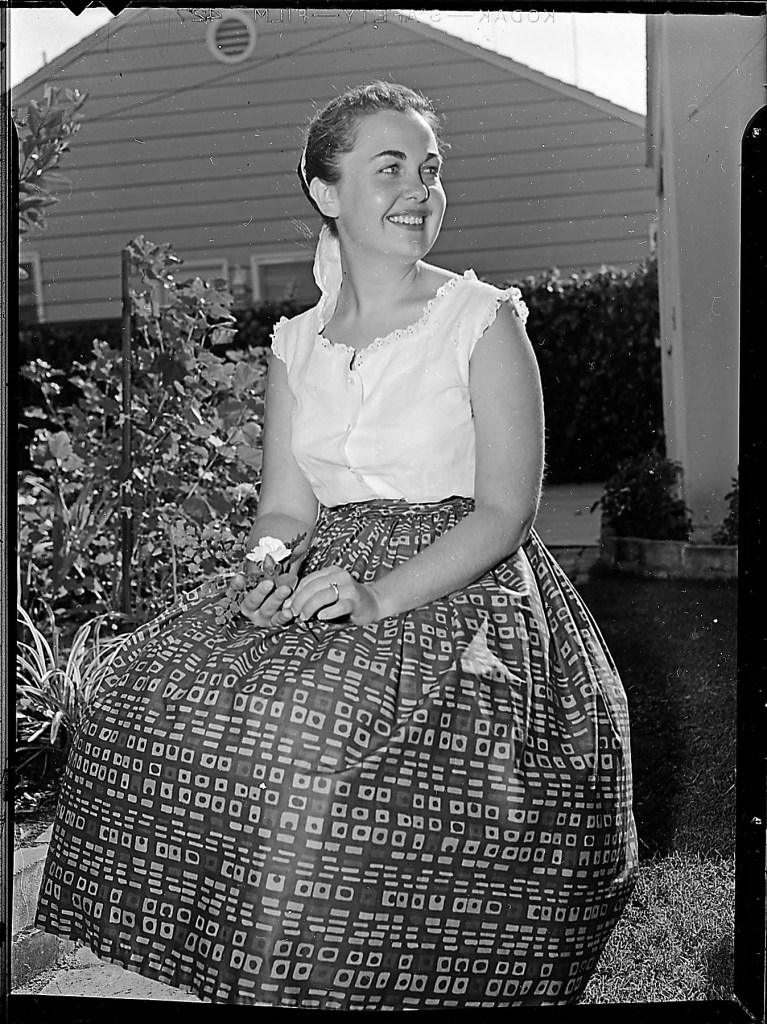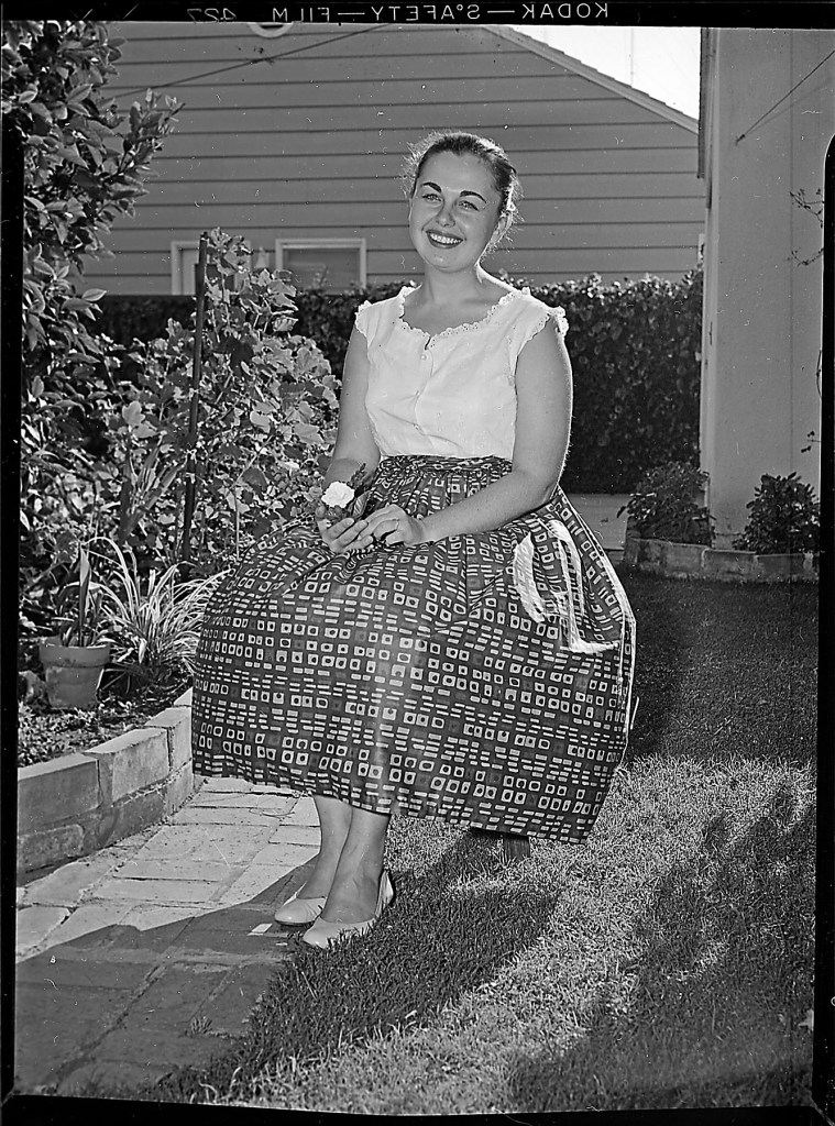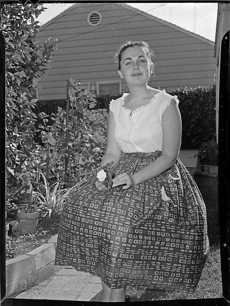 Joel poses and photographs Salley in their nicely manicured backyard. Showing all images as it may trigger someone’s memory !