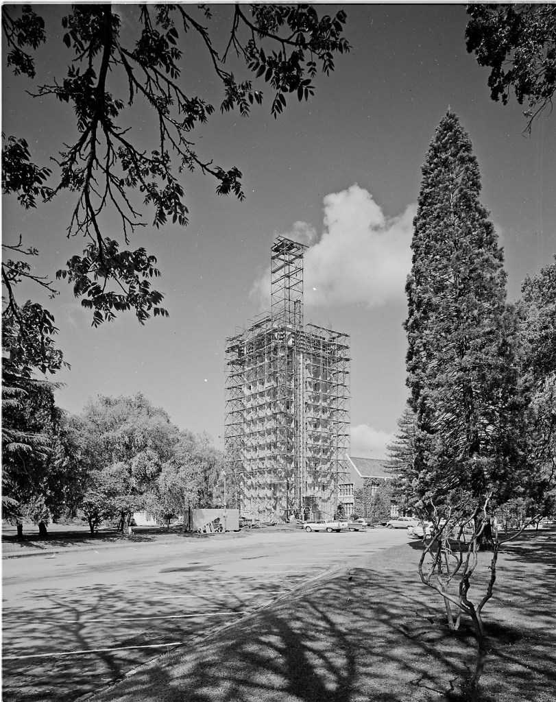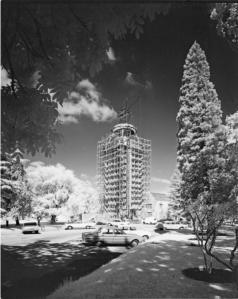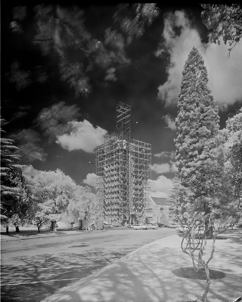 Last water tower construction image from Joel in this series shows an almost completed water reservoir, central to this design. This negative is on regular film. Joel made sure to capture a tight crop of the scene.