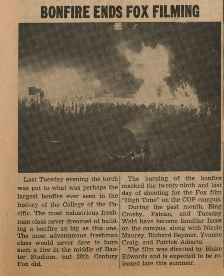The date next to the event is Tuesday, March 1, 1960. Then it dawned on me that the “High Time” reference must be related to the HIgh Time movie. I had no idea till today that this movie was partially shot in Stockton.