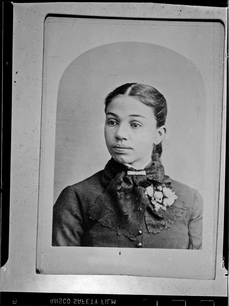 The negative portrays a young woman, photographed on a Carte de Visite or CDV in short. This was what photographers would deliver as part of a photoshoot and these were often used by photographers as calling cards.