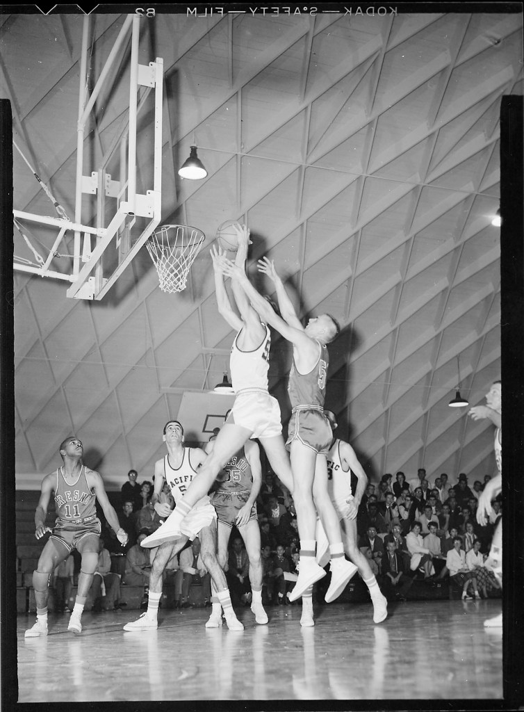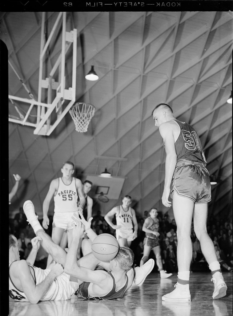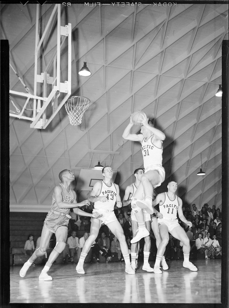 Some research in the Pacific Reviews from 1960 show there was indeed a basketball match on Feb 5, 1960 between UOP and Fresno State, this was the same period the movie “High Time” was shot across multiple locations in CA.