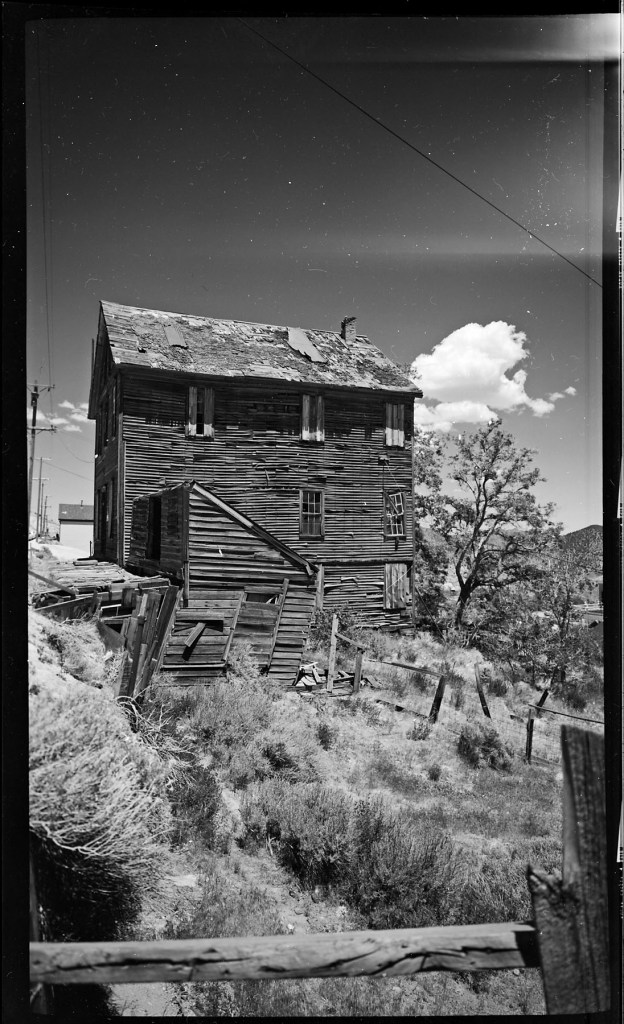 Although the above enlarged 120 format negative has some quality issues, that will not prevent a 16×20″ print. This is a good example of urban/rural decay. The house is barely holding up.