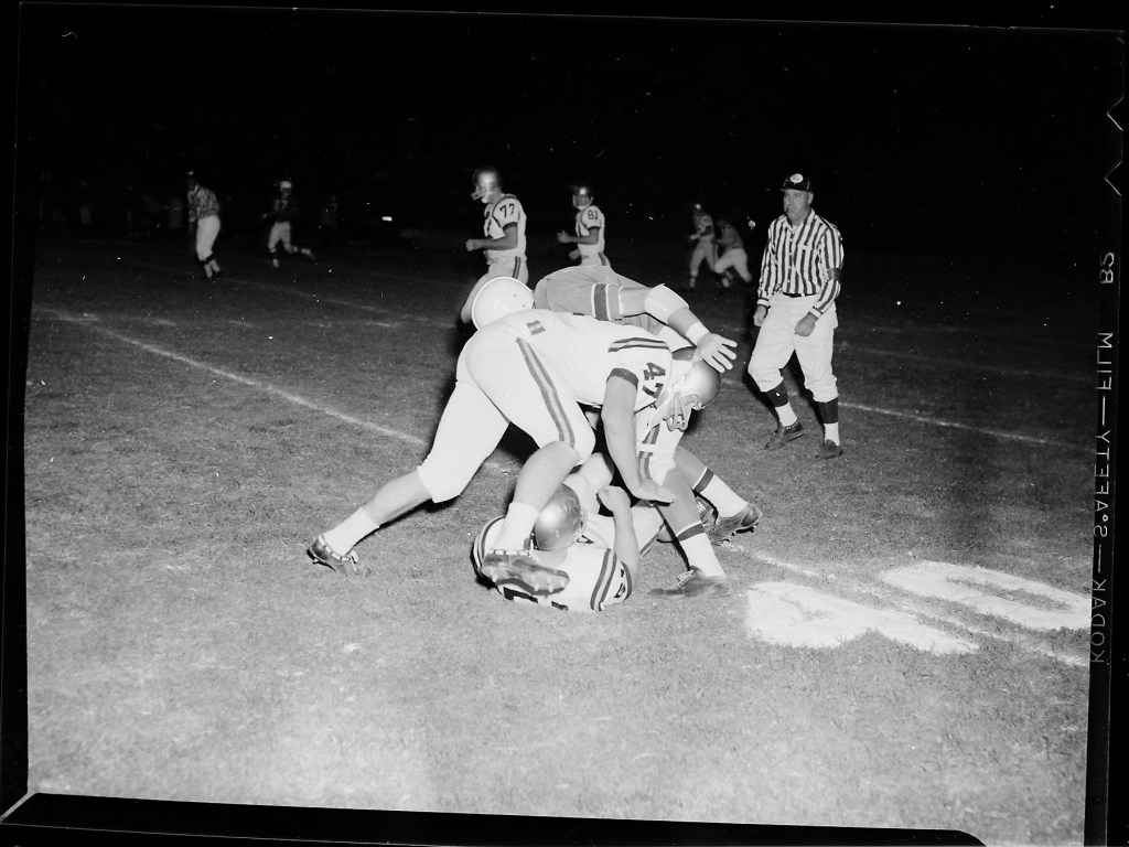 This sleeve with 4×5″ negatives from the Jessica Fong Collection of Dardis Negatives mentions Sept 27 – Nov 15, 1961, UOP Football.
