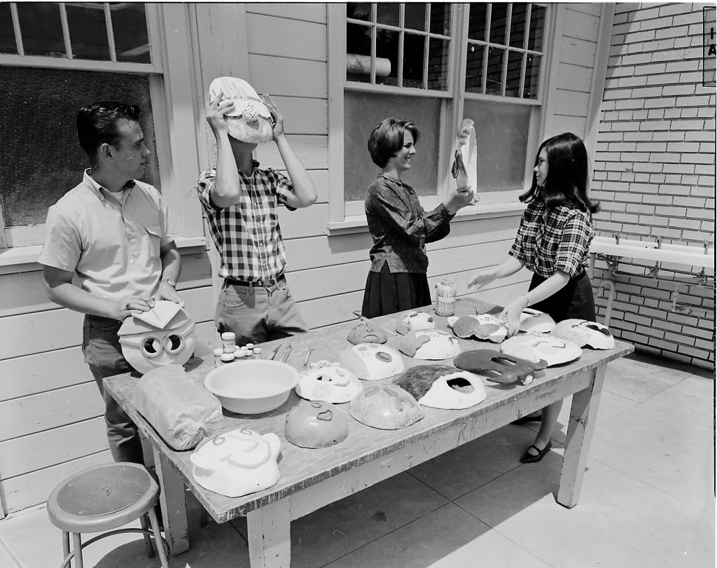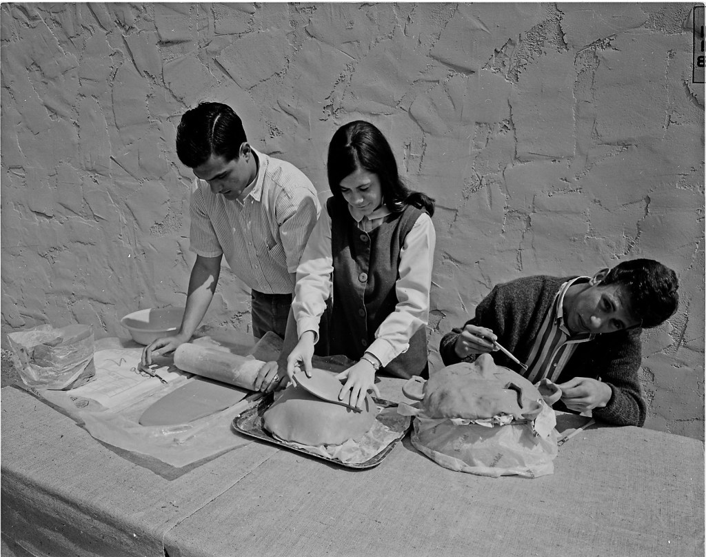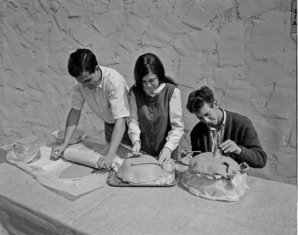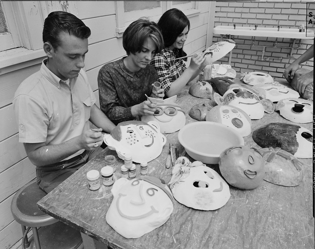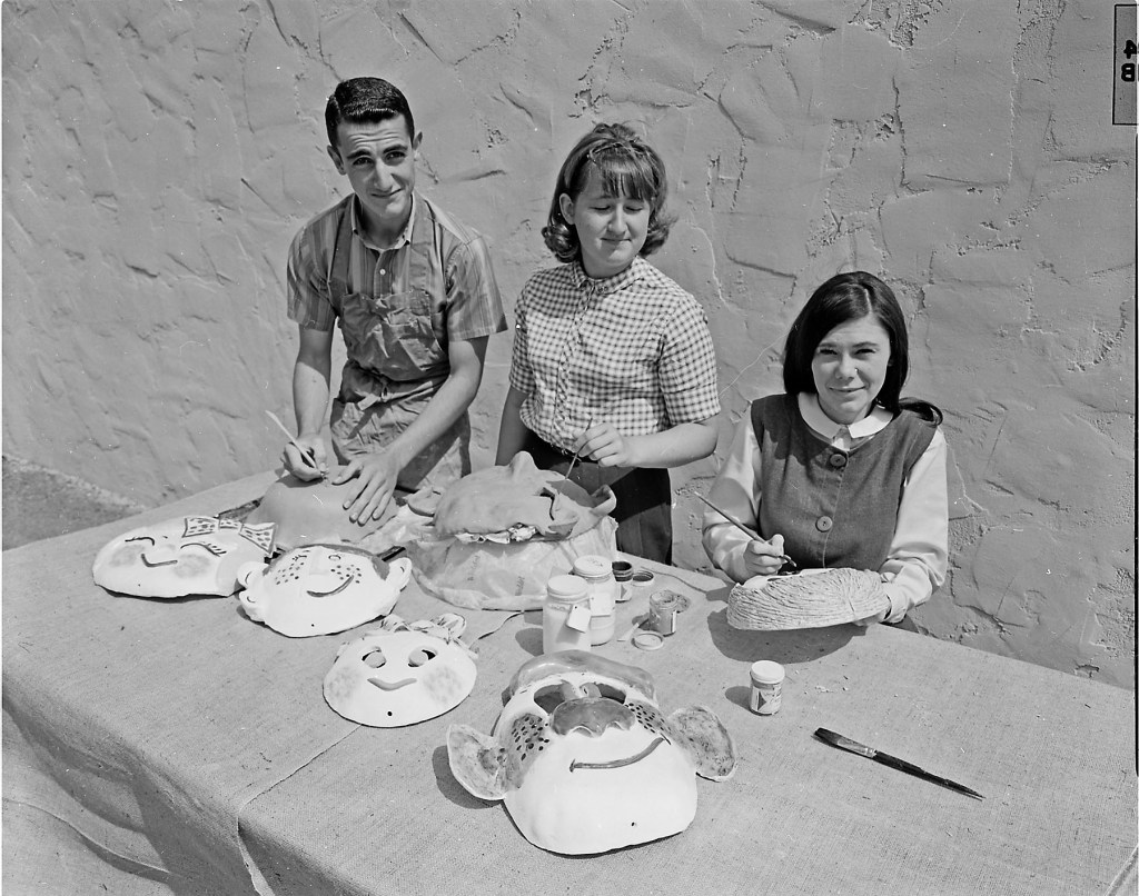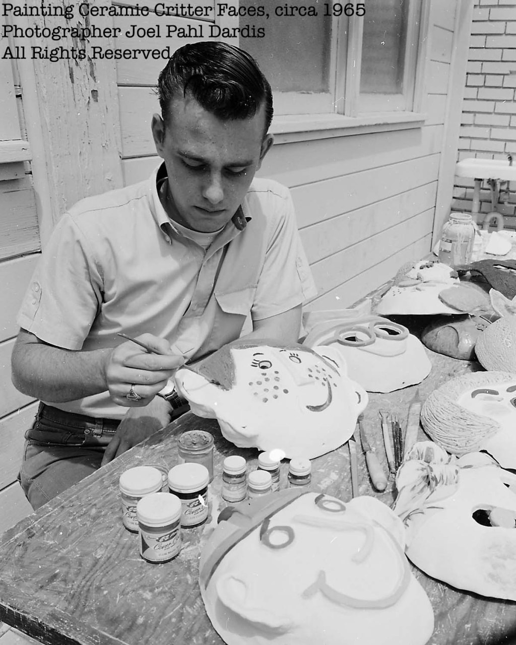 We’re setting the clock back to 1965. Joel photographed the shaping and decorating of what appears to be ceramic face masks.