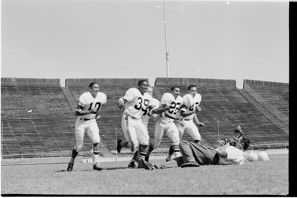 Six negatives left over in 120 roll film format. The label on the envelope reads “COP Football, Sept 2, 1959”